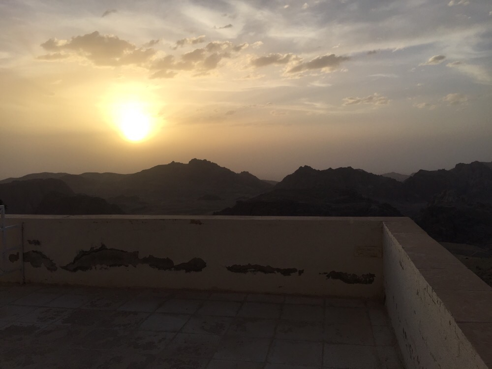 今晚住在佩特拉古城山顶全景酒店,可以俯瞰岩石山峰,进了酒店后就开始感觉心慌慌的。。这些天一直都有这种感觉,只是到了今天最为严重。在自然条件如此恶劣的地方,人们只能顽强地活着,看着让人心痛。再加上时不时战乱,常会遇到叙利亚难民儿童紧随游客强买强卖。没办法,人穷志短,能帮就尽量帮助他们,尽量对他们好一些。今天在一个咖啡馆遇见一个会说几句汉语的叙利亚男孩服务生,相对来说教养较好,一直跟我边学汉语边聊天,并让我给他听首汉语歌。当时我正在听《偶然》,就与他一块儿听,他用本子记下这个词,我告诉他“偶然”用英语解释是“by chance”的意思,他随口说“it's romantic”。我觉得他是个聪明走心的孩子,不象其他叙利亚小孩儿那种一副小混混的样子。。相比之下,我们平常的资源太过剩,应该尽量节俭,对自然保持敬畏,降低需要,时时保有奉献之心,这无关道德,不过是一种本能。。明天开始耶路撒冷,又会在灵魂深处受到刺激,忽然脆弱到开始想家。