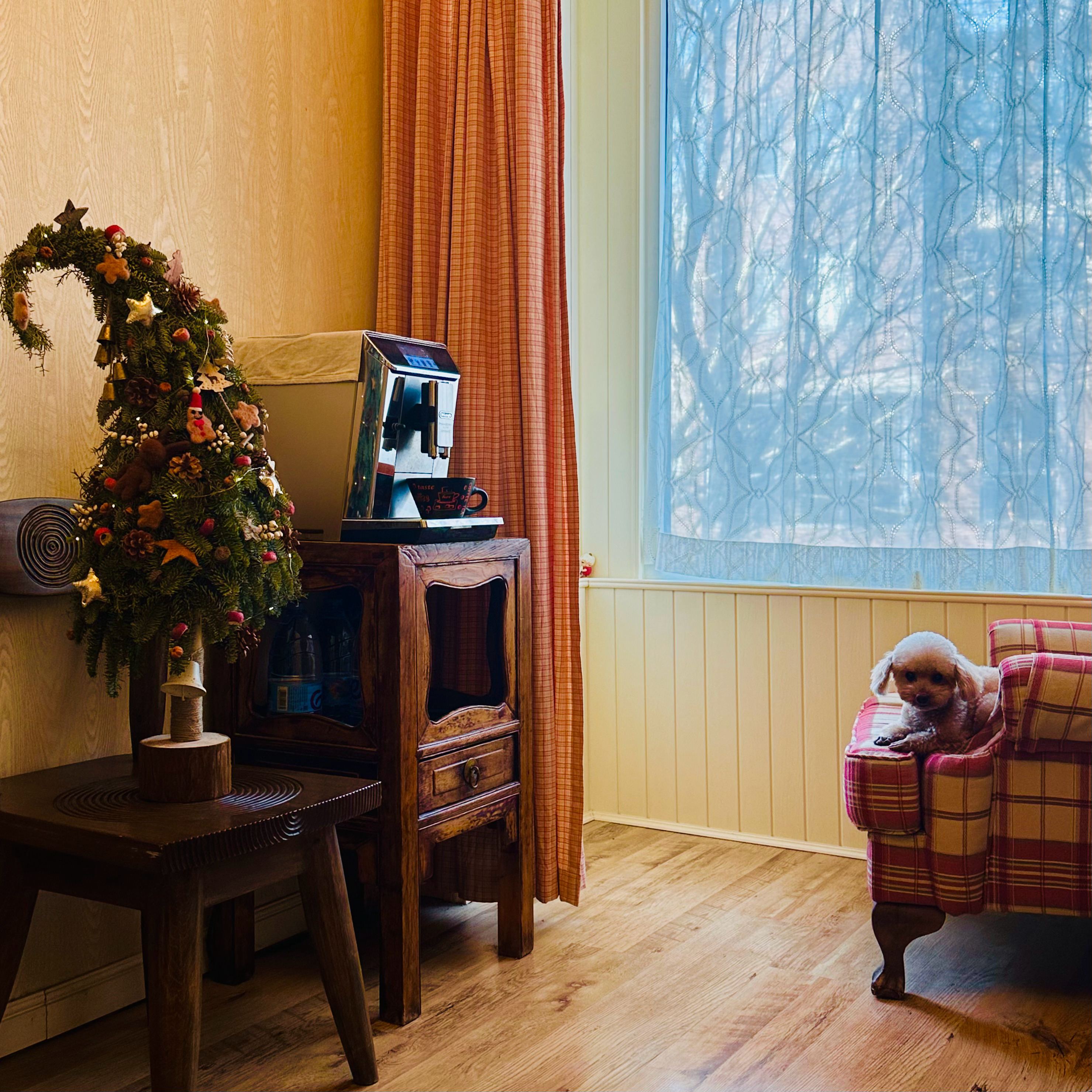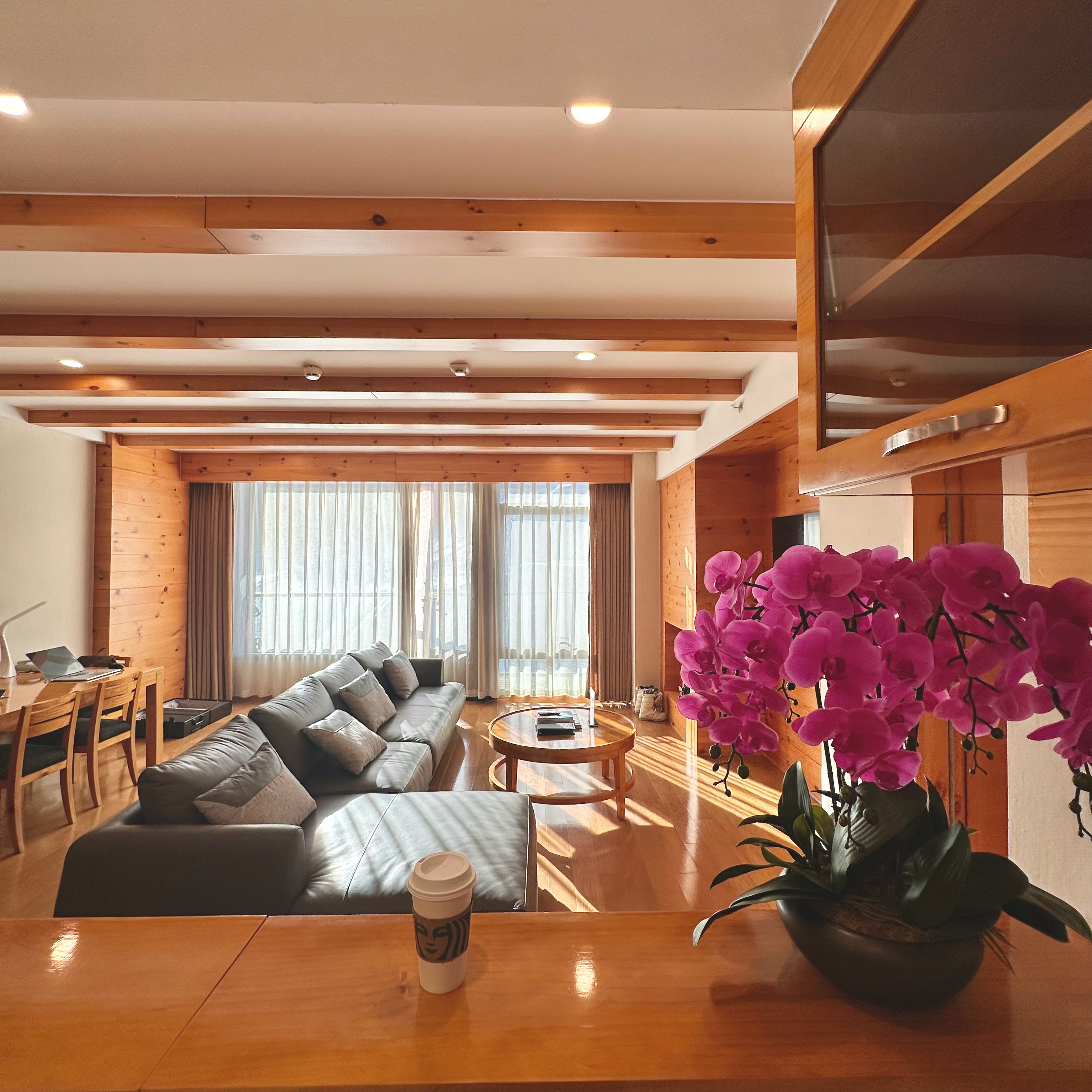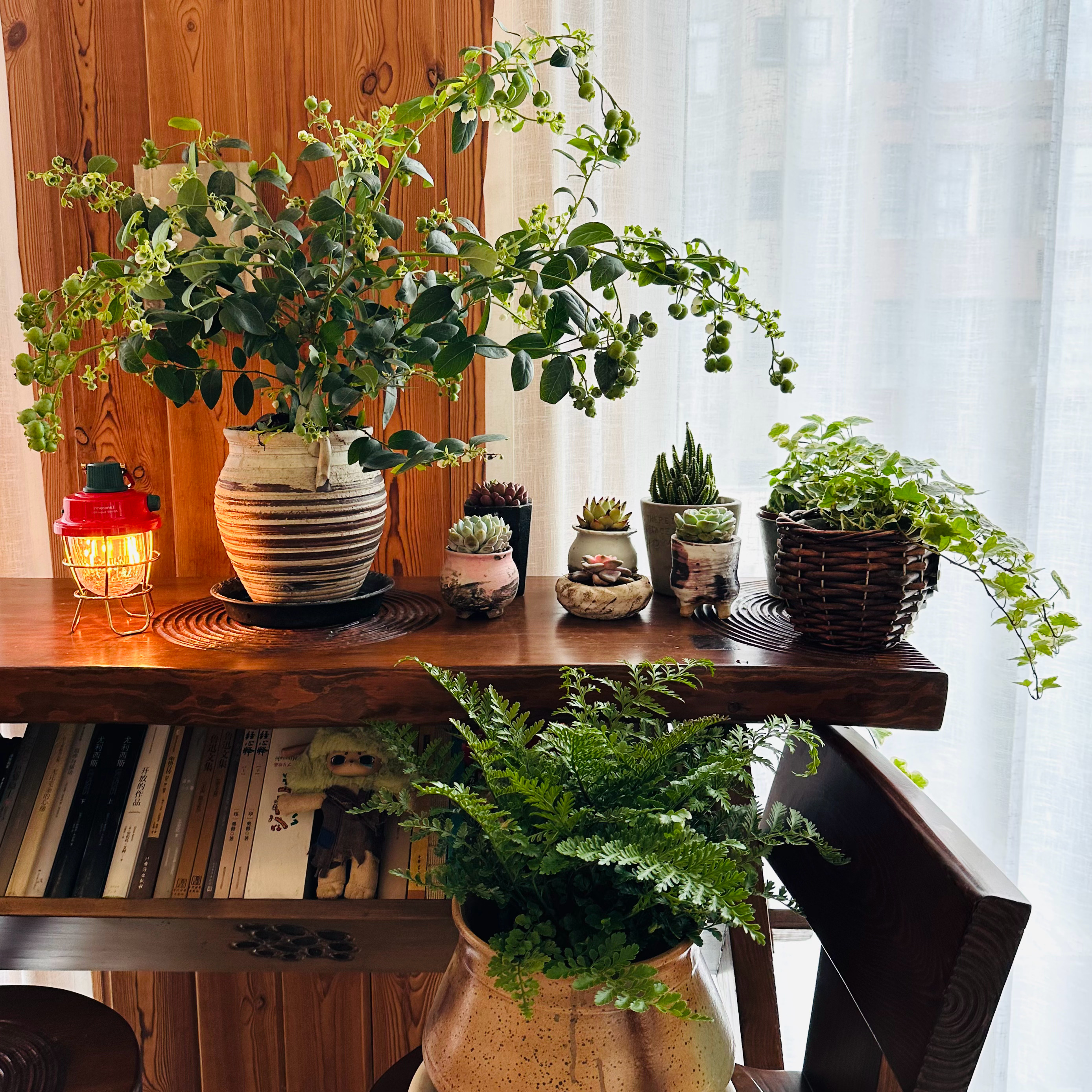 包括换了窗帘和在家里养些绿植。