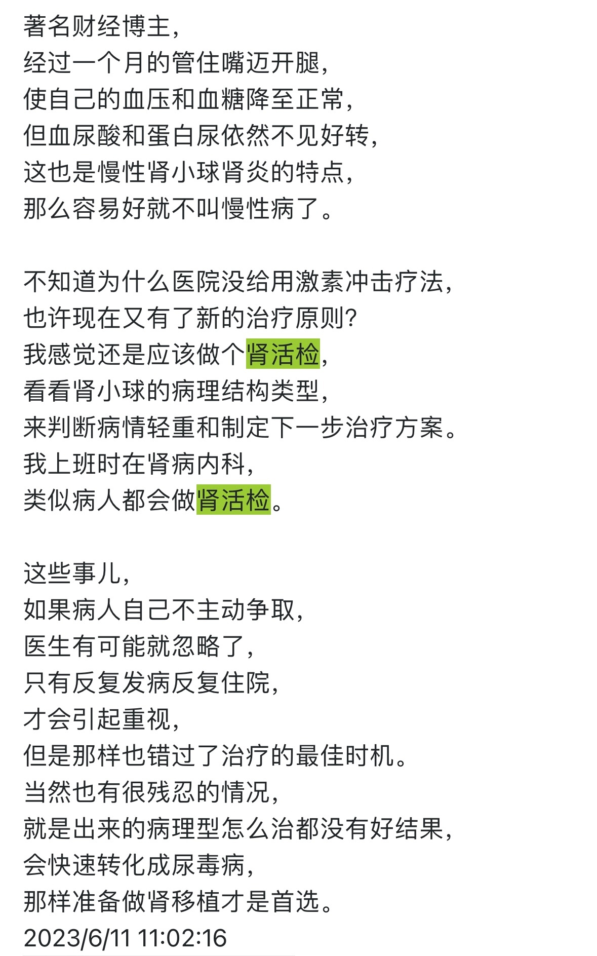 现在站在病人或家属的角度,
