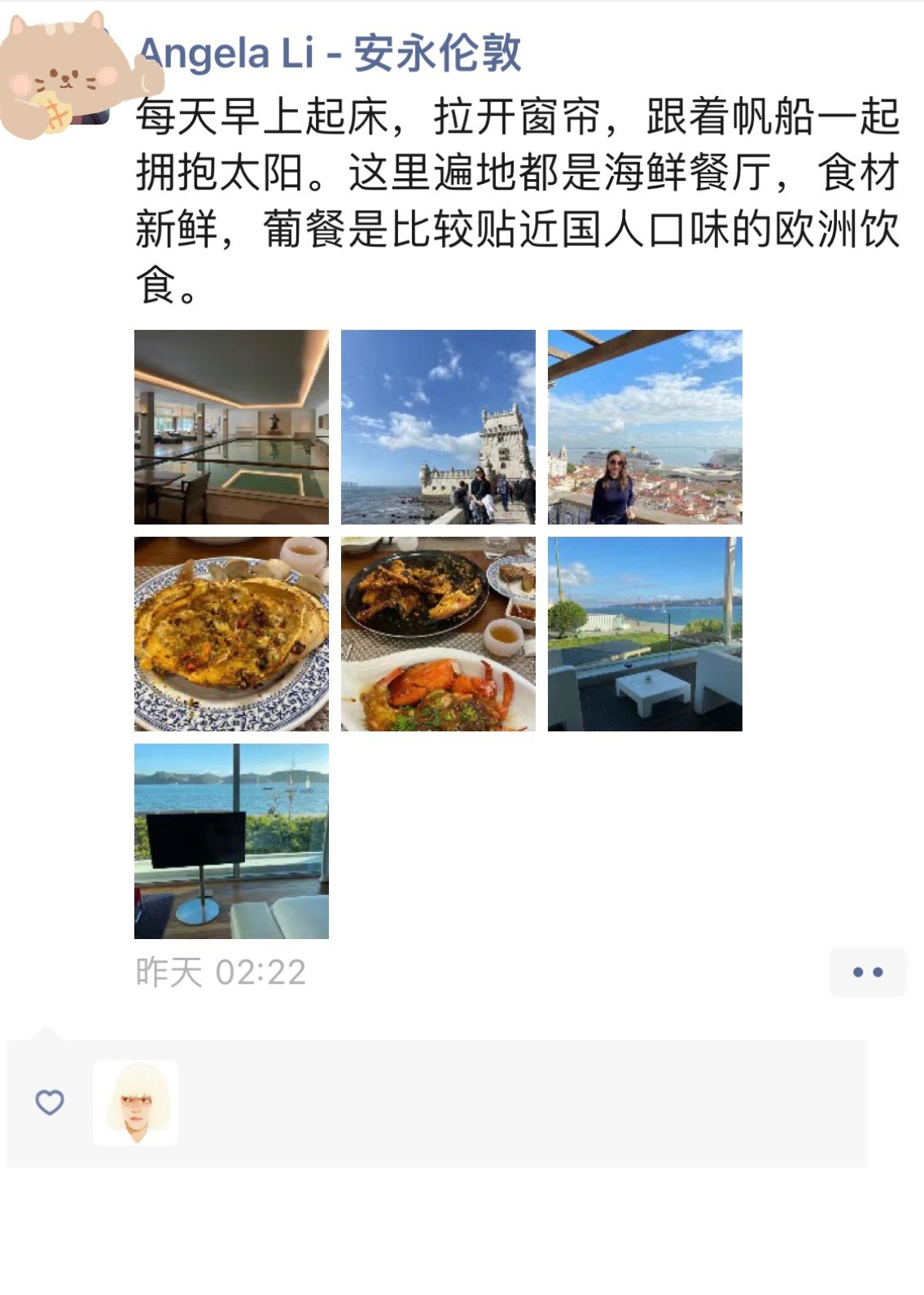 只私发给我一些游玩照片。