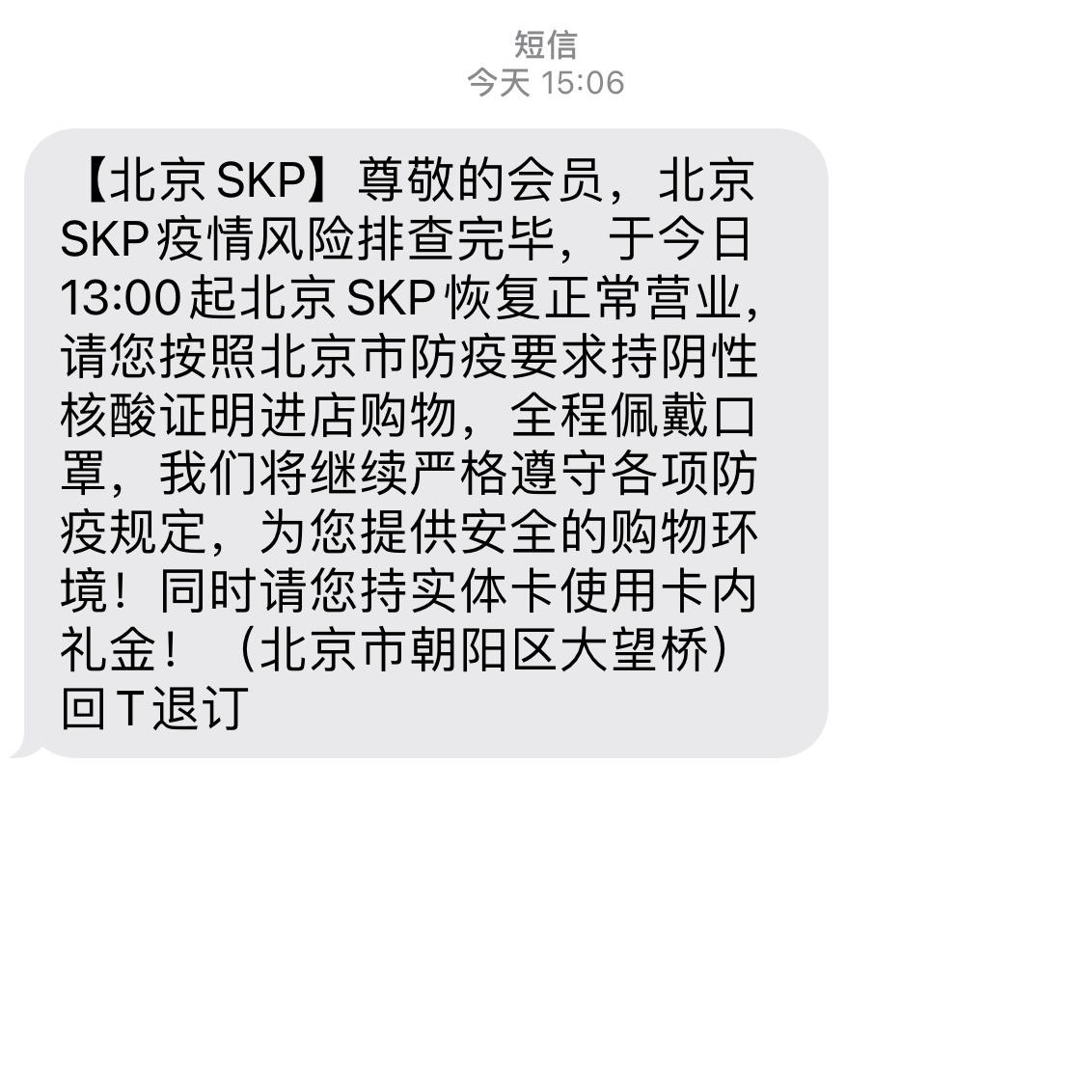 恢复营业的短信。