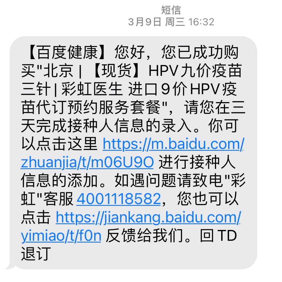 3月9号下单买的九价疫苗,