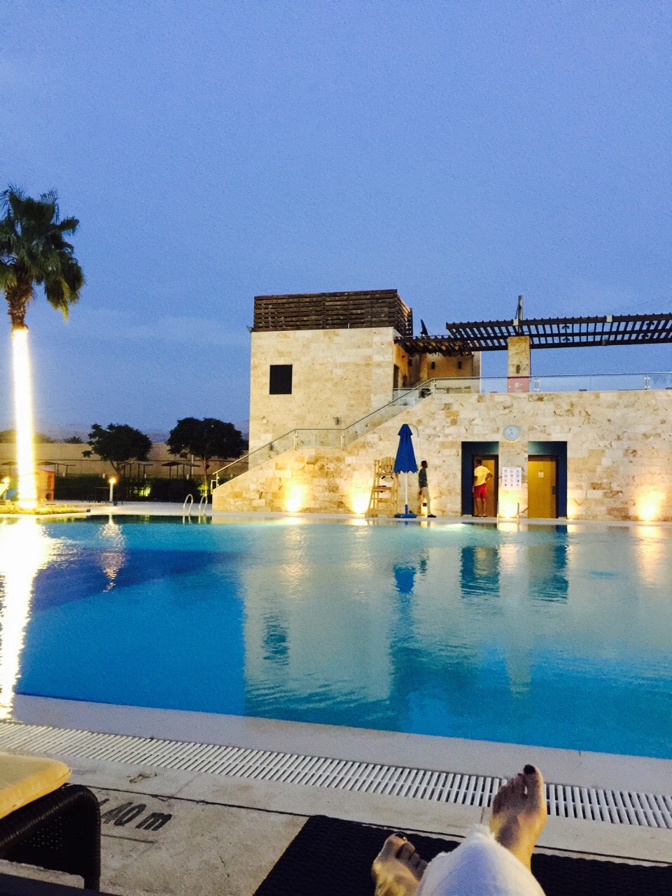 死海边的淡水池、啤酒、圆月、微风、小晕。
