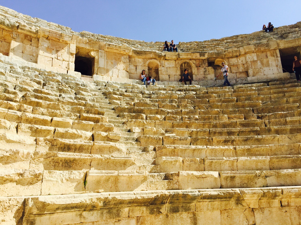 今晚住在佩特拉古城山顶全景酒店,可以俯瞰岩石山峰,进了酒店后就开始感觉心慌慌的。。这些天一直都有这种感觉,只是到了今天最为严重。在自然条件如此恶劣的地方,人们只能顽强地活着,看着让人心痛。再加上时不时战乱,常会遇到叙利亚难民儿童紧随游客强买强卖。没办法,人穷志短,能帮就尽量帮助他们,尽量对他们好一些。今天在一个咖啡馆遇见一个会说几句汉语的叙利亚男孩服务生,相对来说教养较好,一直跟我边学汉语边聊天,并让我给他听首汉语歌。当时我正在听《偶然》,就与他一块儿听,他用本子记下这个词,我告诉他“偶然”用英语解释是“by chance”的意思,他随口说“it's romantic”。我觉得他是个聪明走心的孩子,不象其他叙利亚小孩儿那种一副小混混的样子。。相比之下,我们平常的资源太过剩,应该尽量节俭,对自然保持敬畏,降低需要,时时保有奉献之心,这无关道德,不过是一种本能。。明天开始耶路撒冷,又会在灵魂深处受到刺激,忽然脆弱到开始想家。