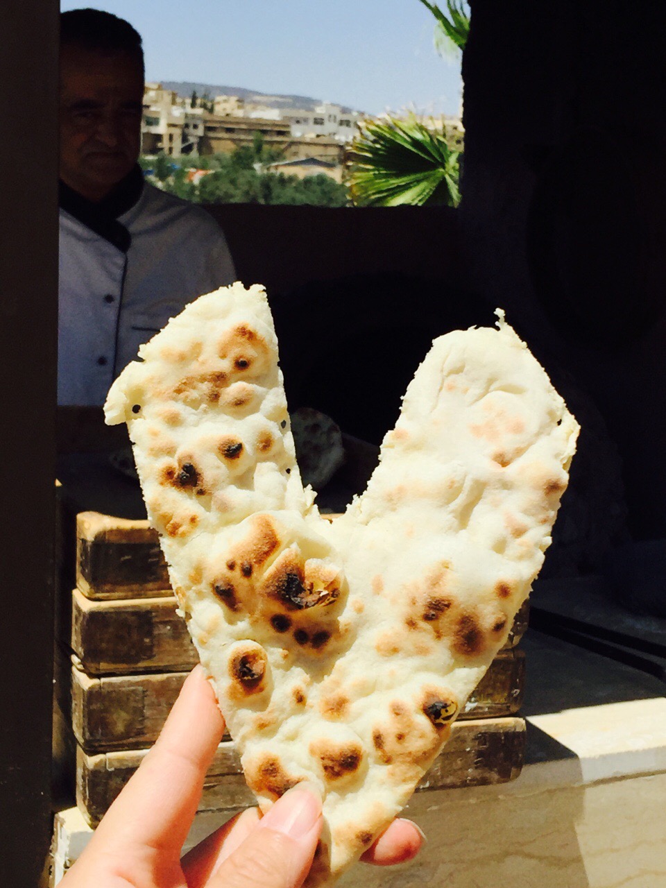 在荒山之间,这个略显华丽的自助餐厅尤显温暖。约旦人很友好,烤饼大叔见我看他烤饼,用刀裁了颗❤️送给我。