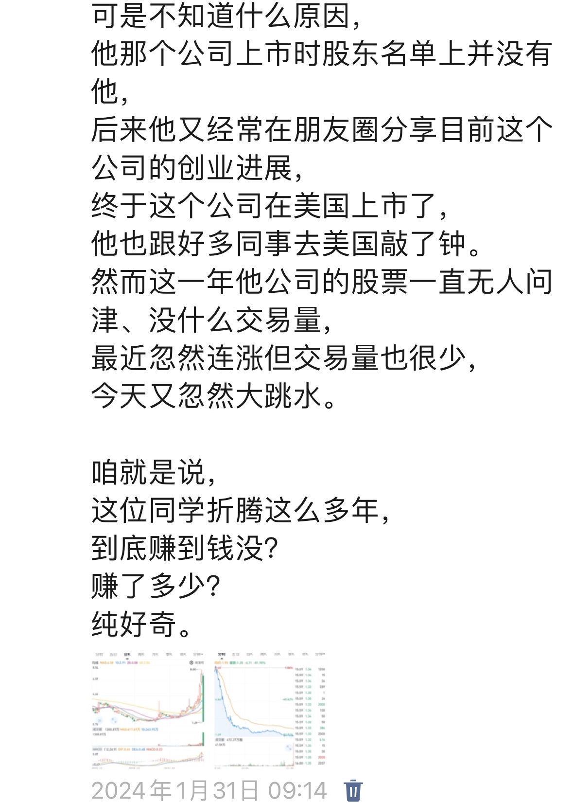 对我说自己很私密的经历和感受。