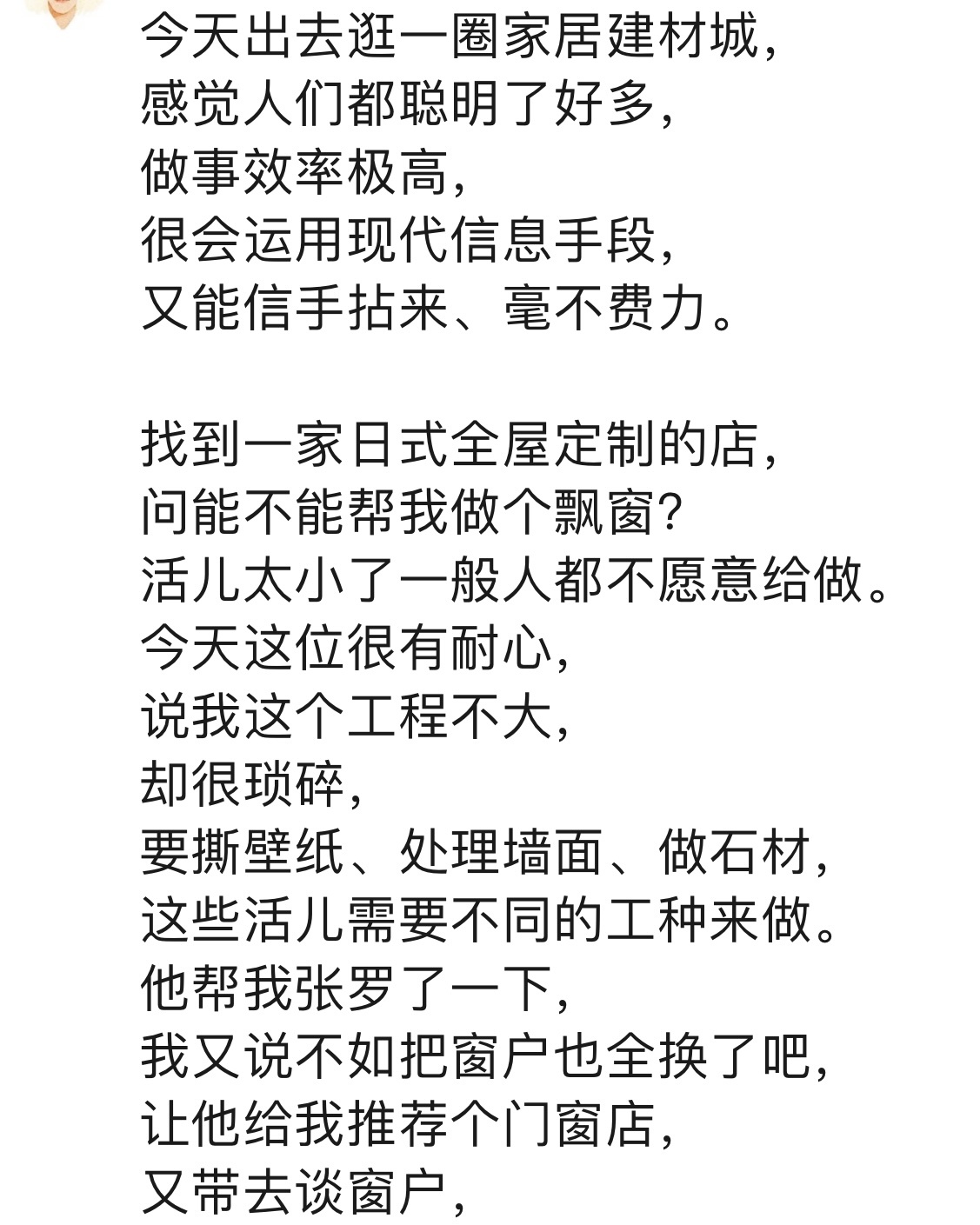 基于之前的安窗户、做防水、送沙发,