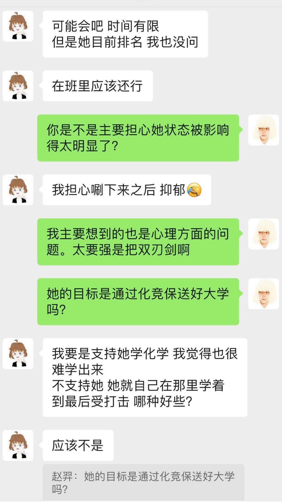 我还没与她私聊过现在还“有没有”。