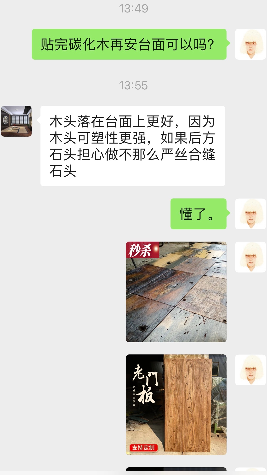 问他知道我为什么喜欢带钉孔的老船木吗?
