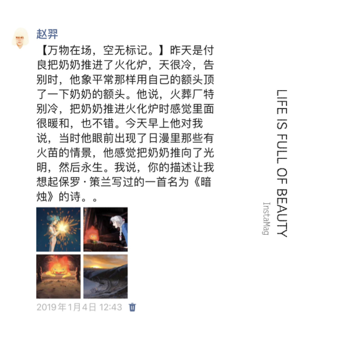 我们更多是在聊最近做的事、自己近来的想法以及对生活的理解,