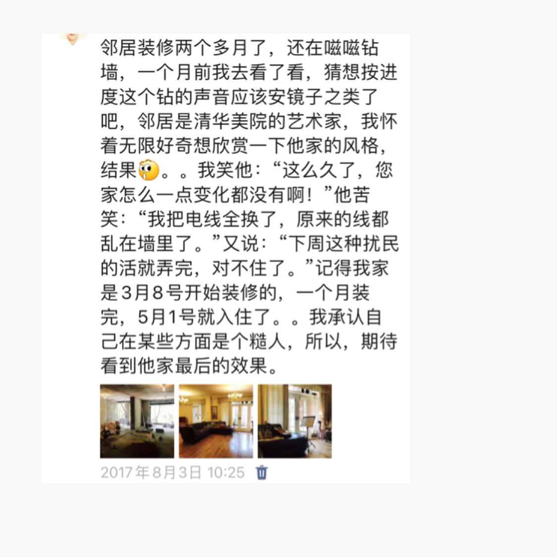 等于是我的装修没有扰到任何邻居,