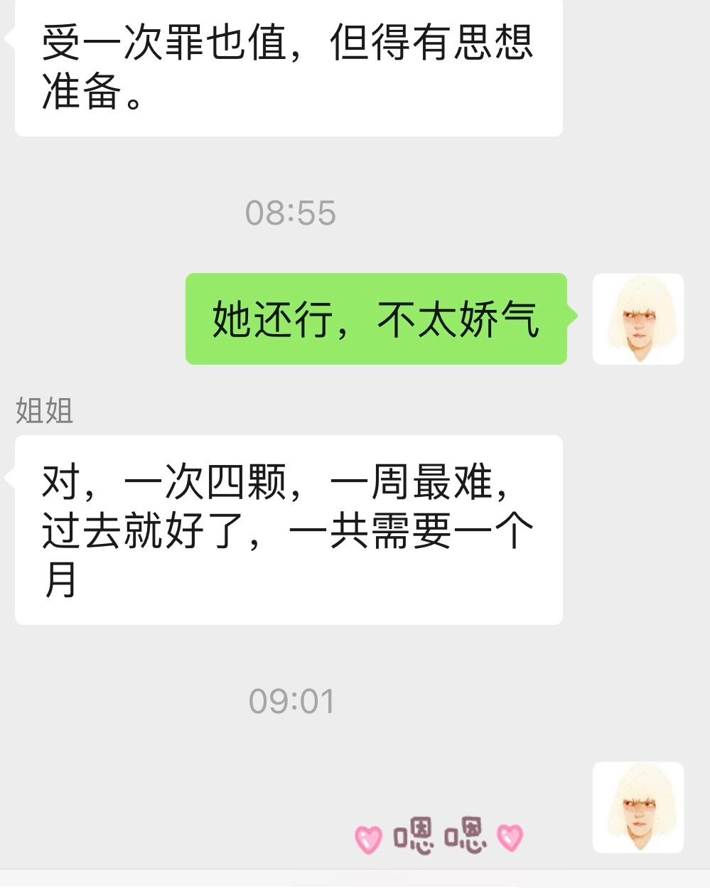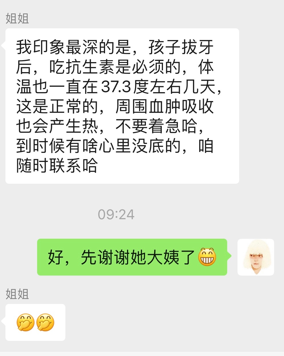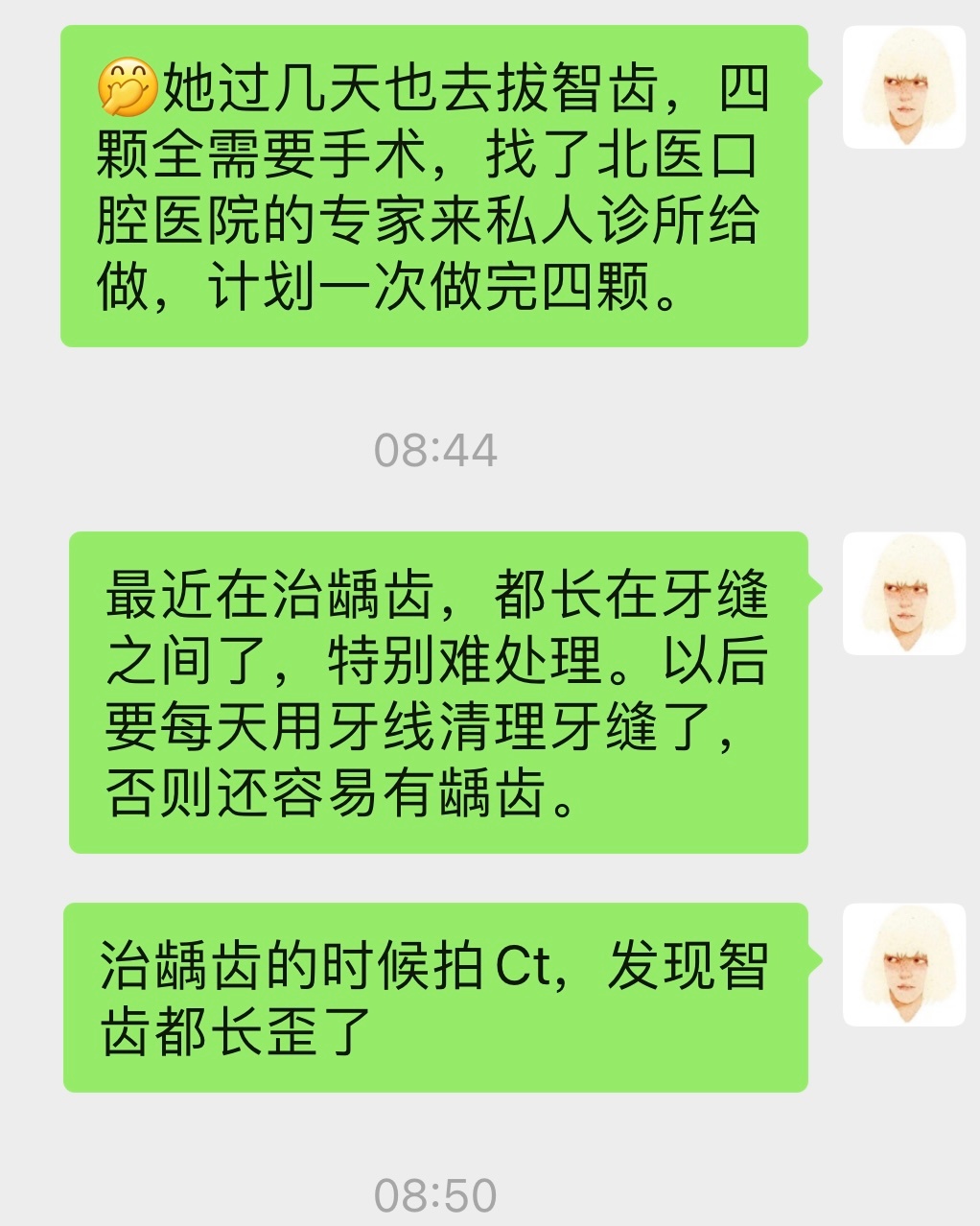 她自己跟医生商量着四颗智齿一次做完。