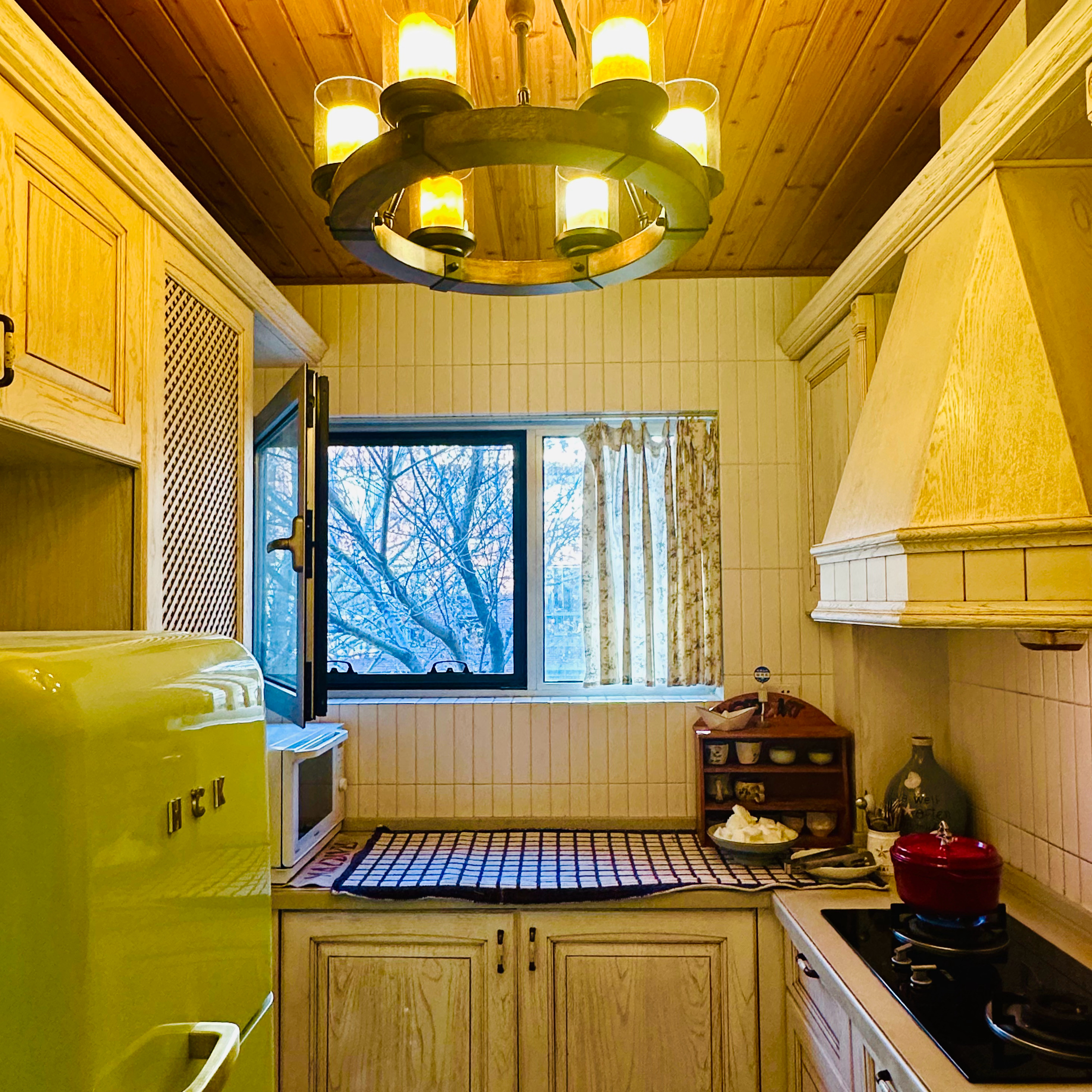 曾担心这么鲜亮的颜色跟家里原有家具不好搭,