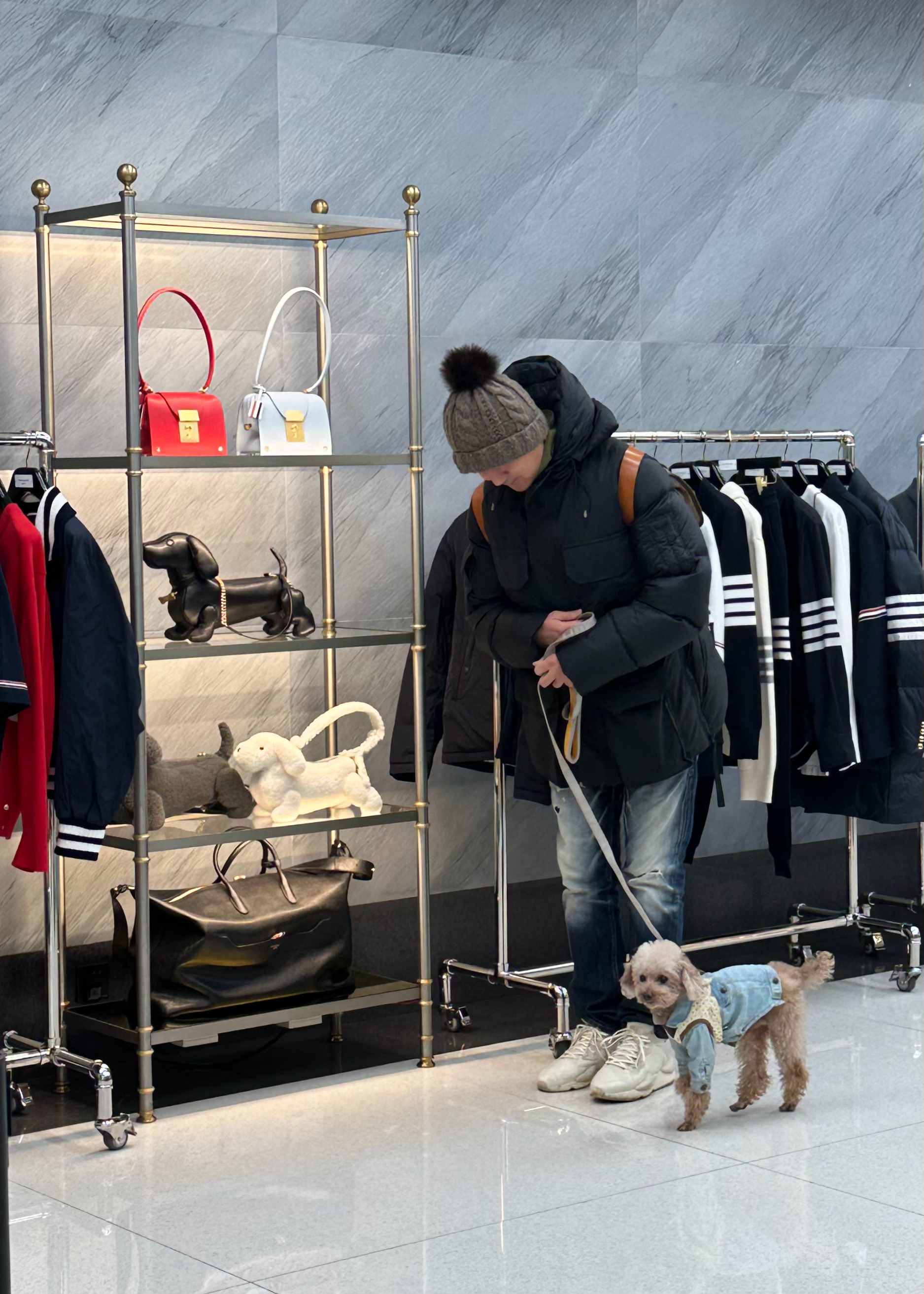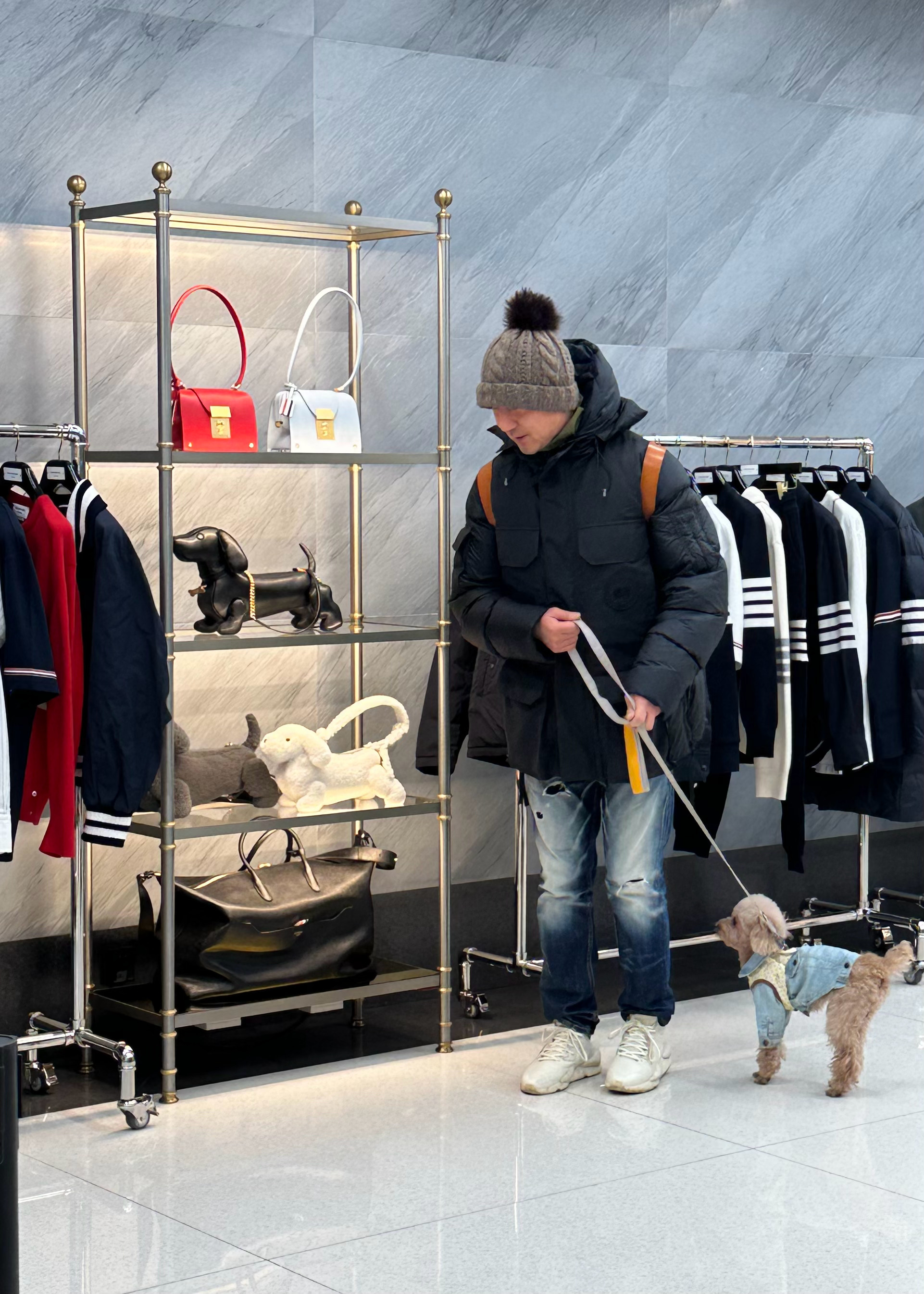 是一只爱逛街的狗狗。
