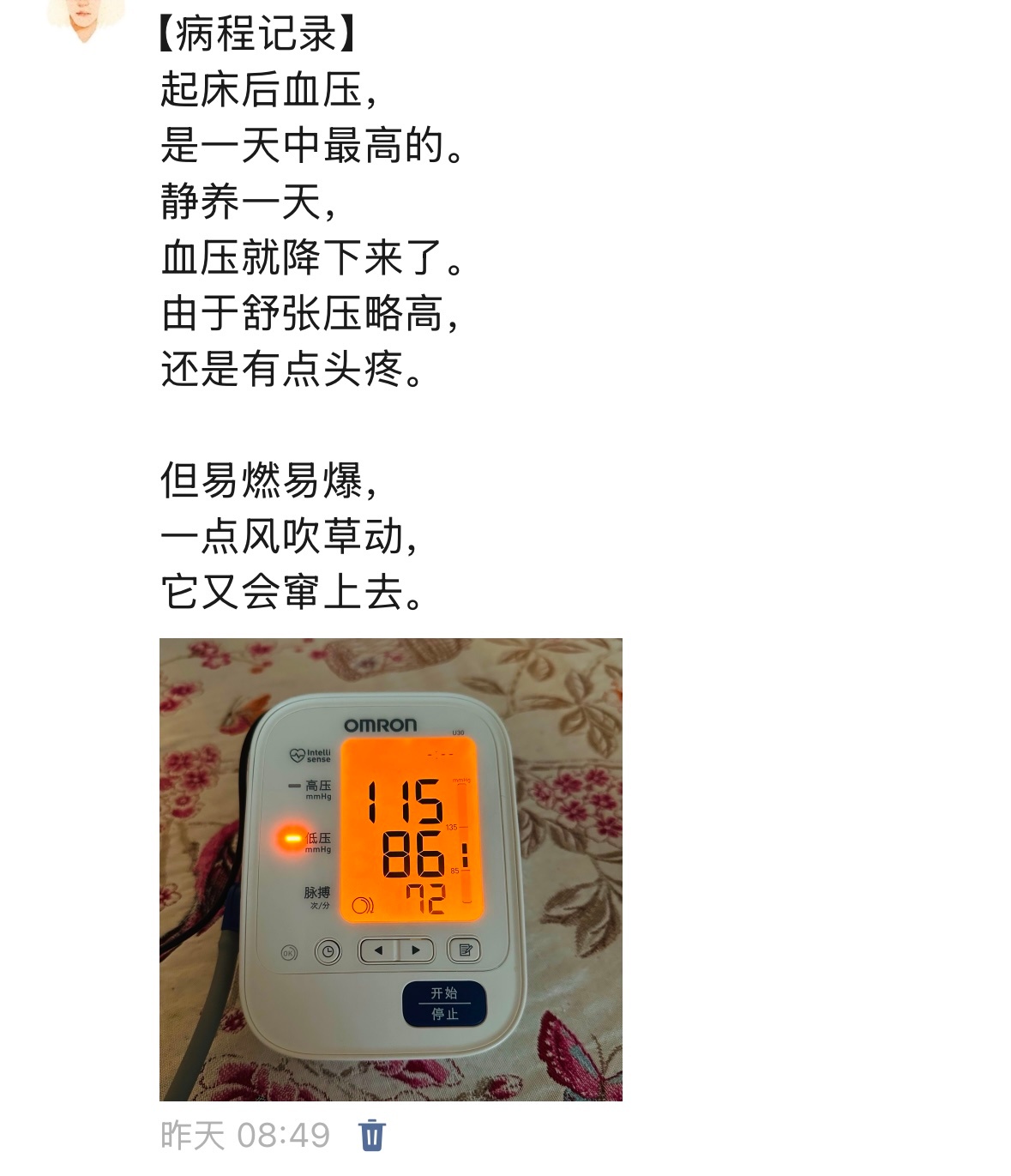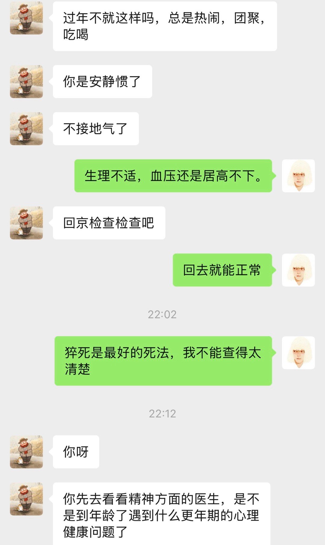 因为约好见面的那天我血压忽然升高了。