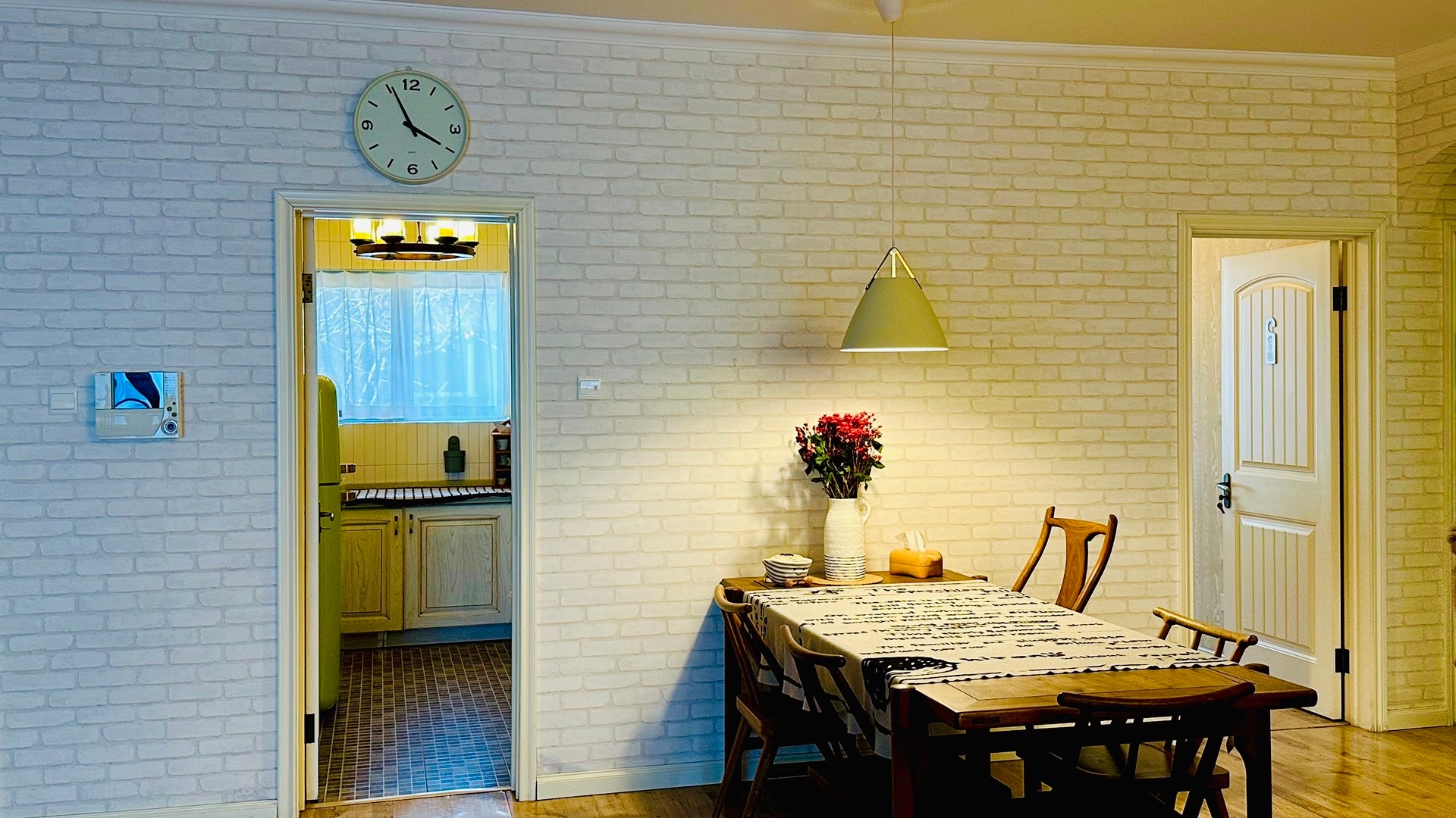 3️⃣在餐桌旁;