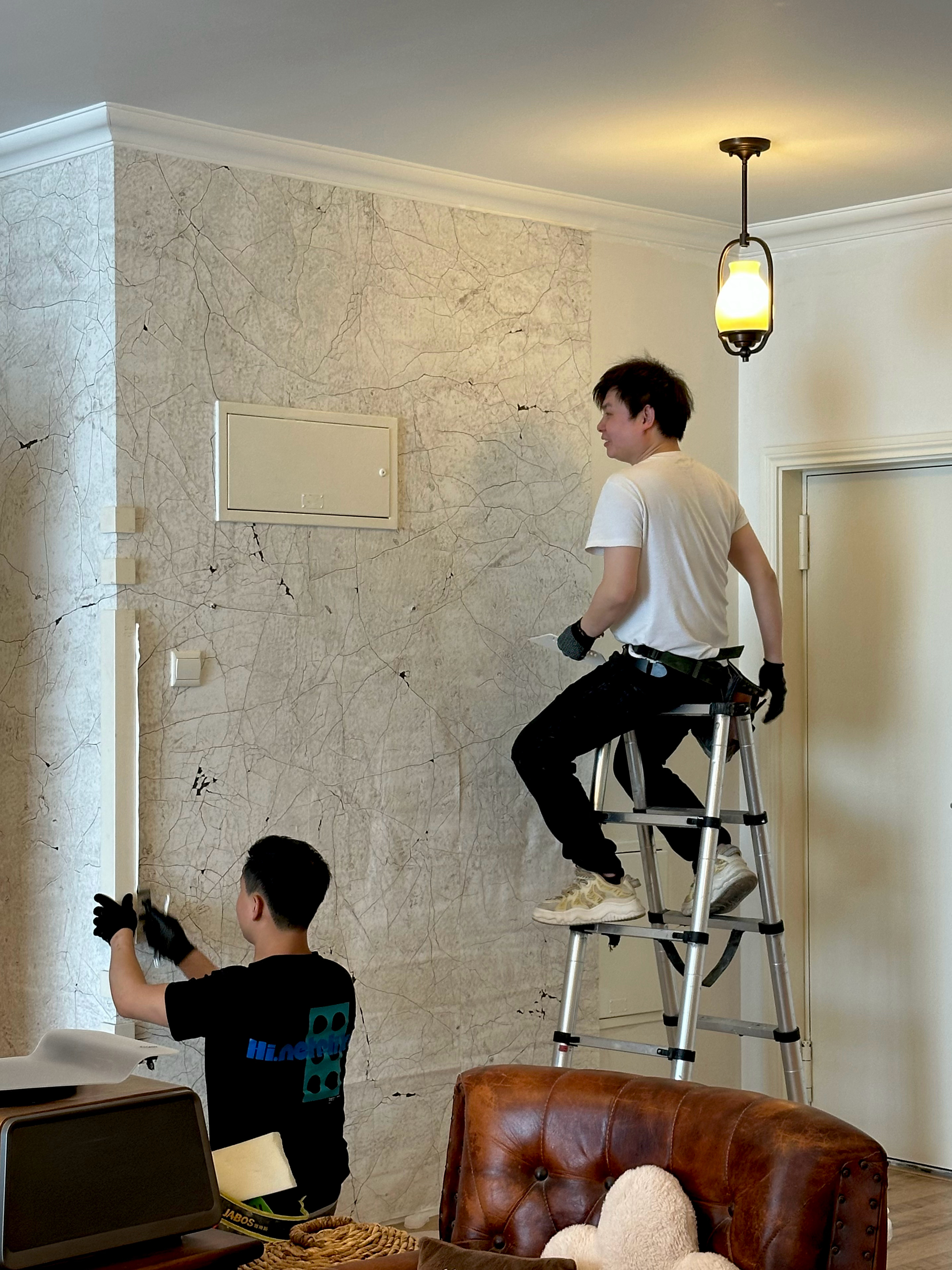 所以他最近要敲打客厅棚顶,