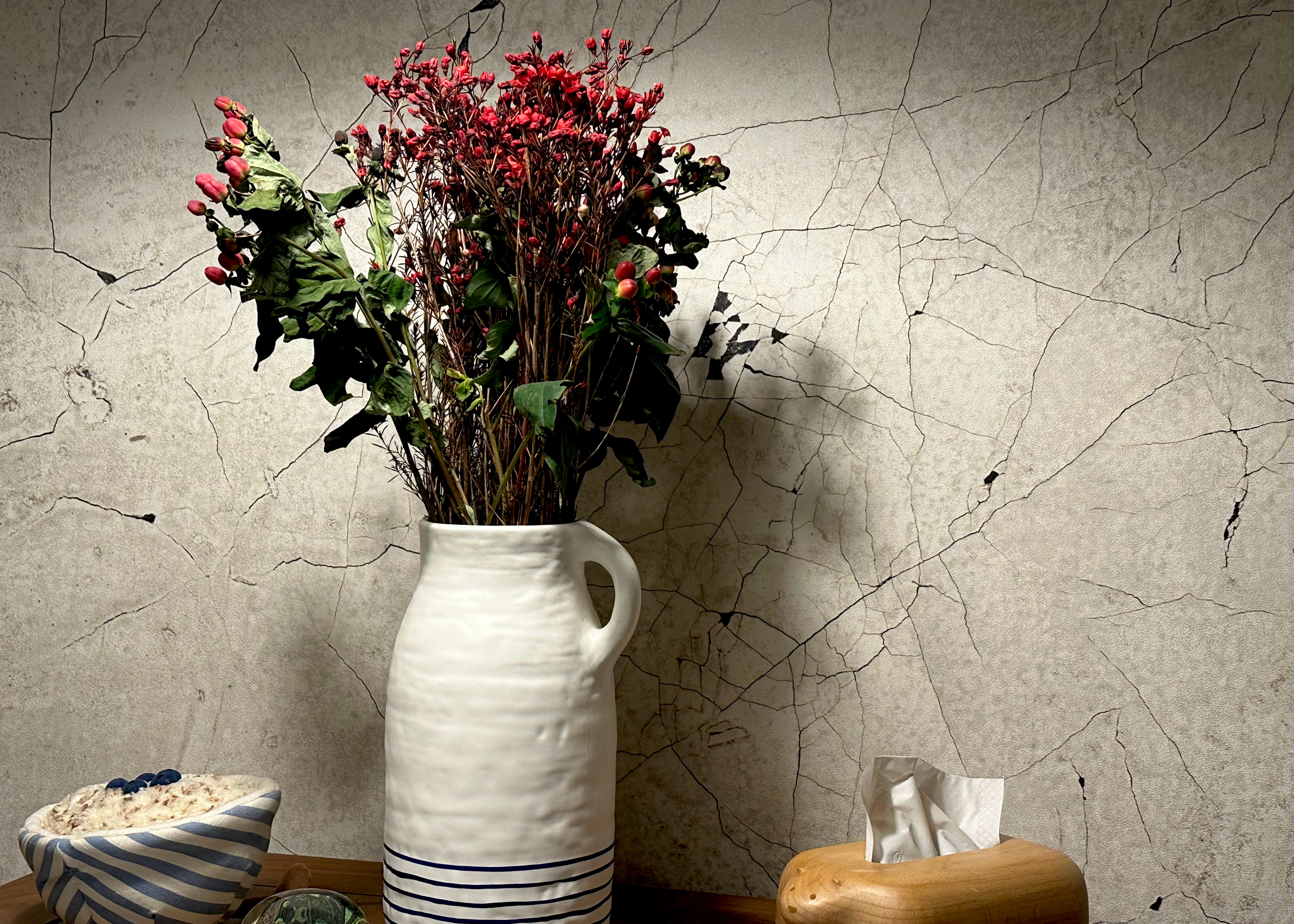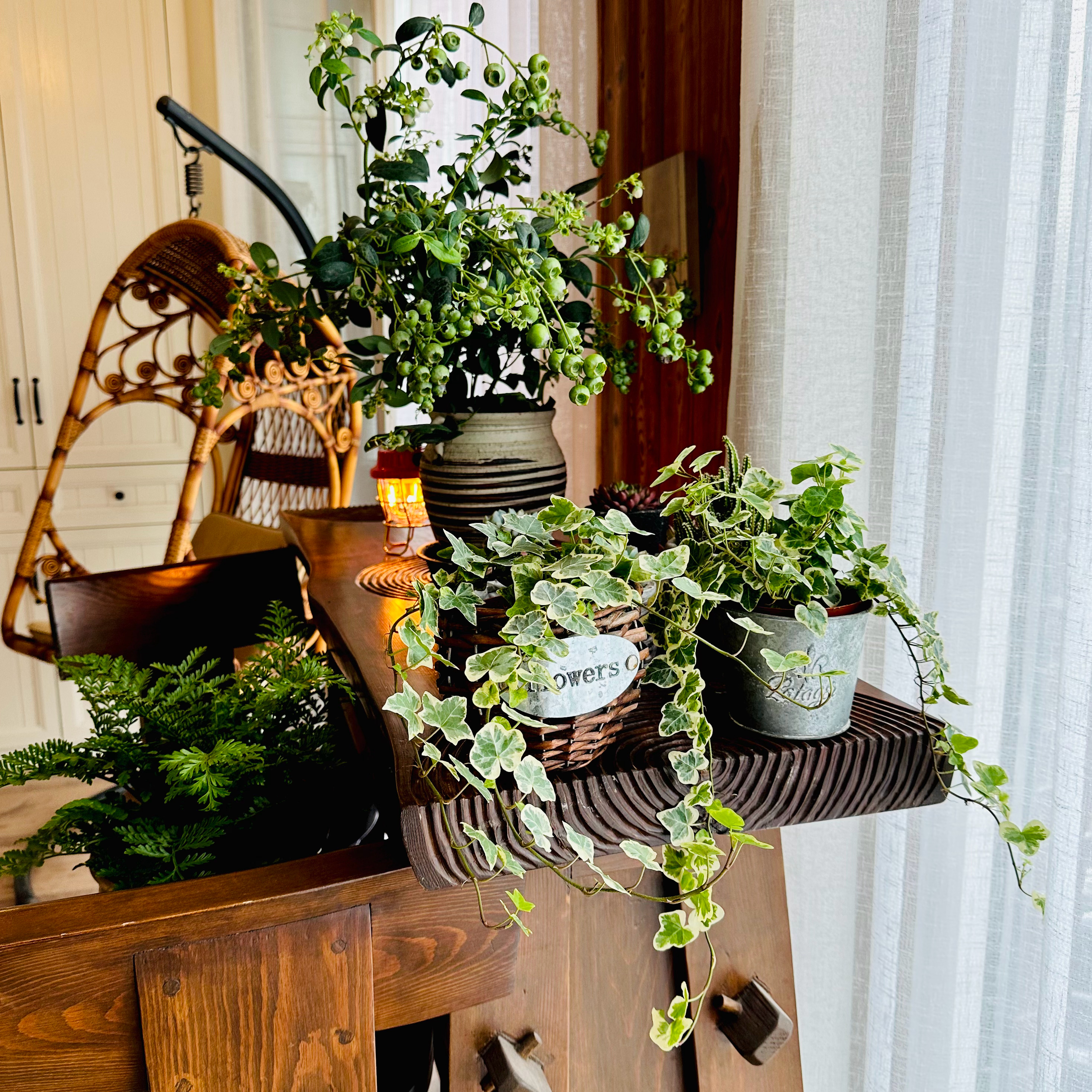 包括换了窗帘和在家里养些绿植。