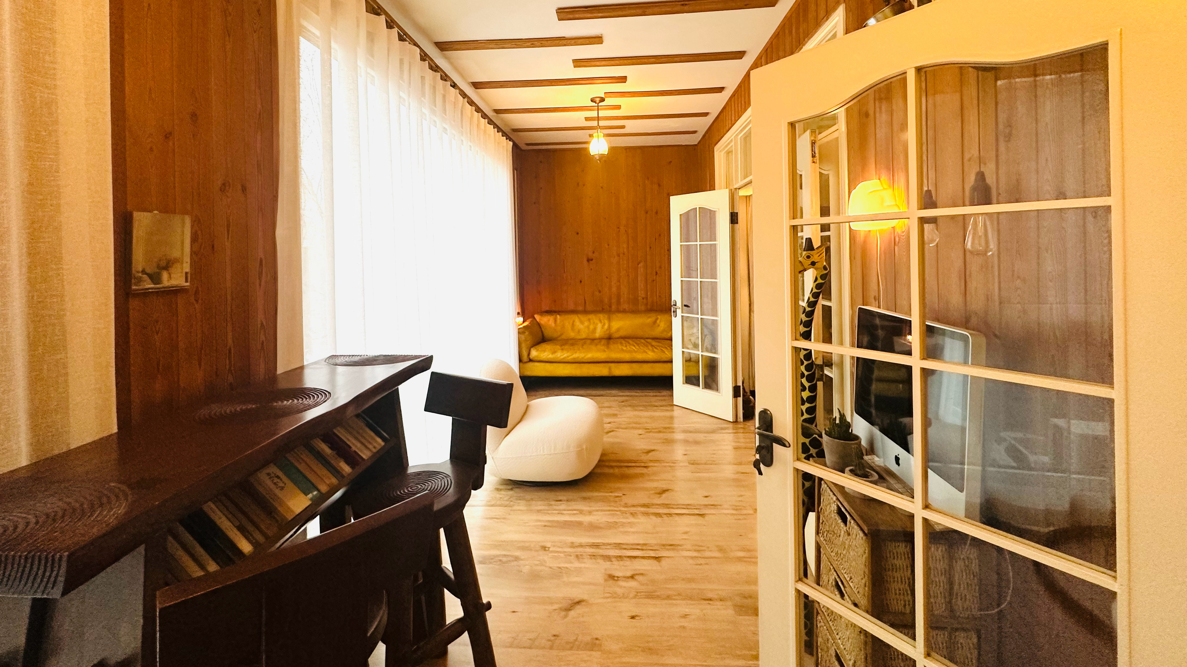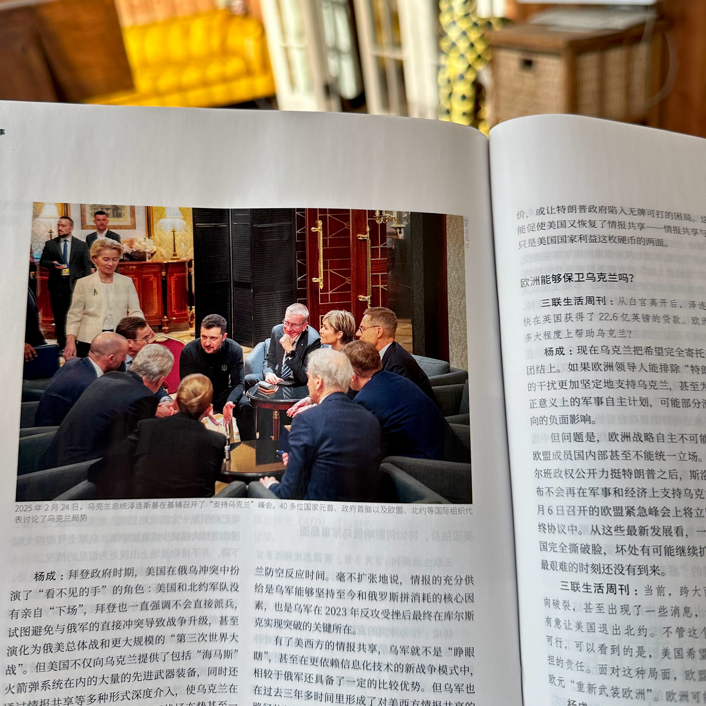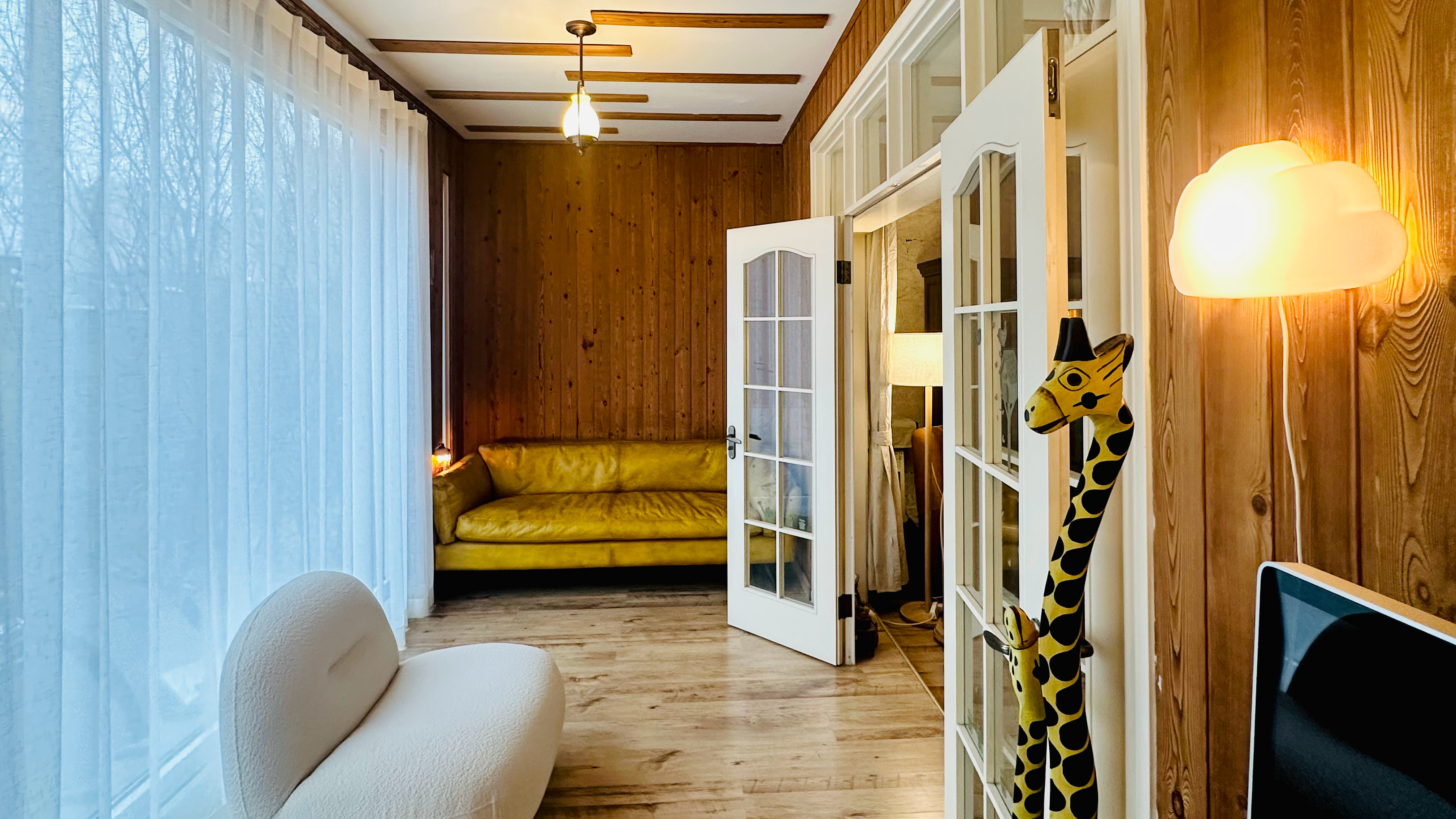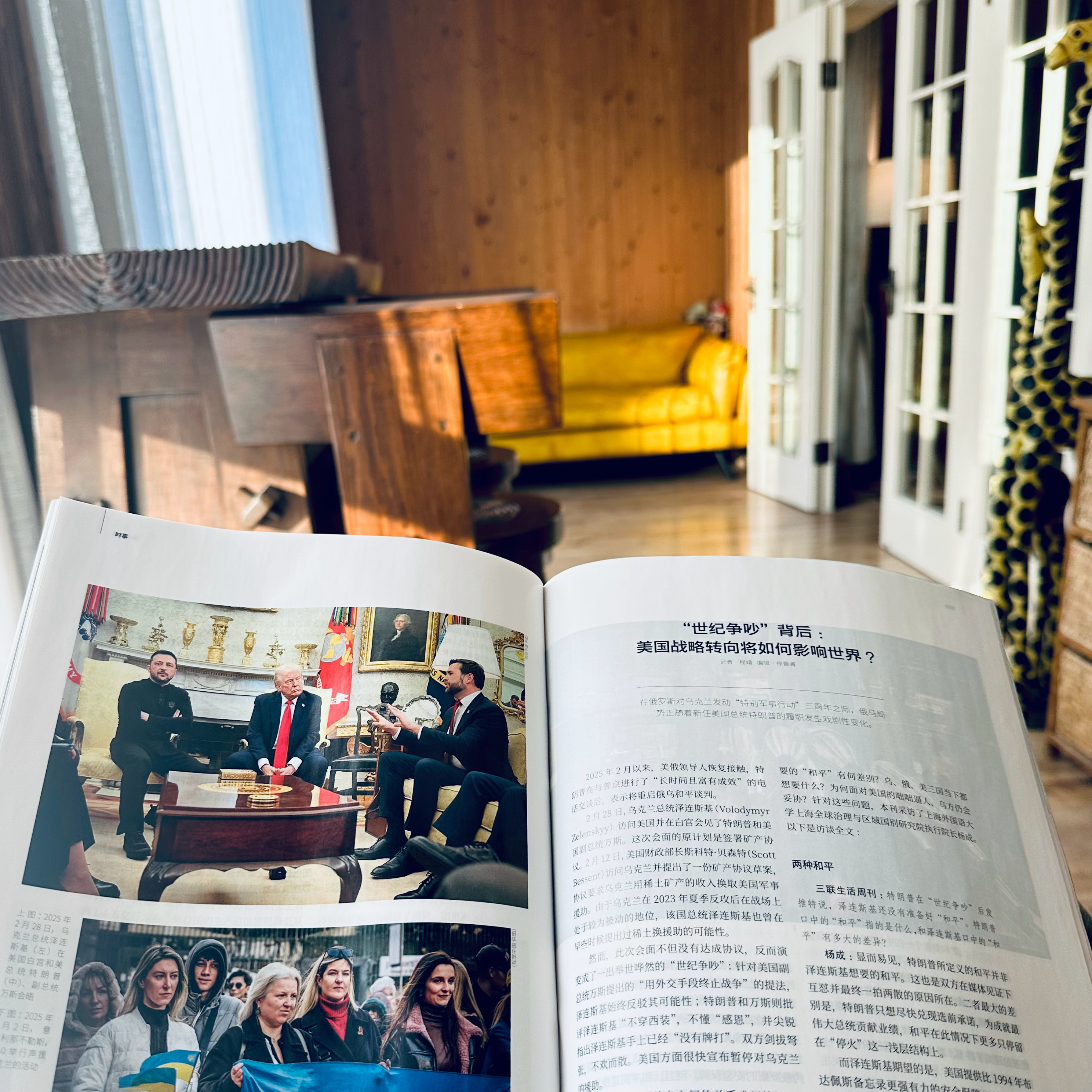 4️⃣坐在白沙发上。