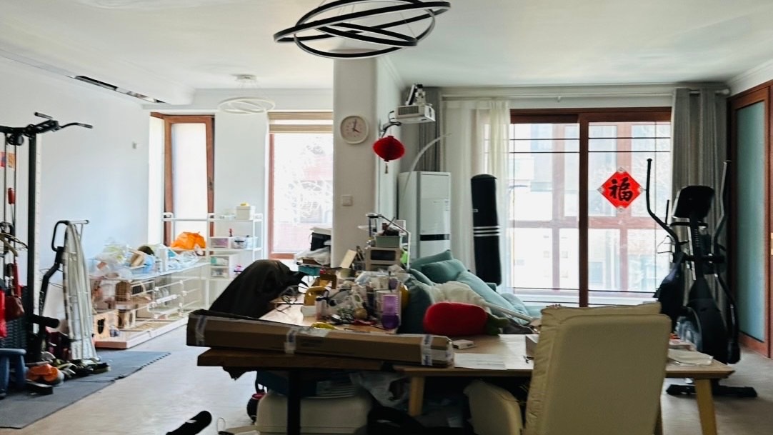 家里散布着各种健身器械。