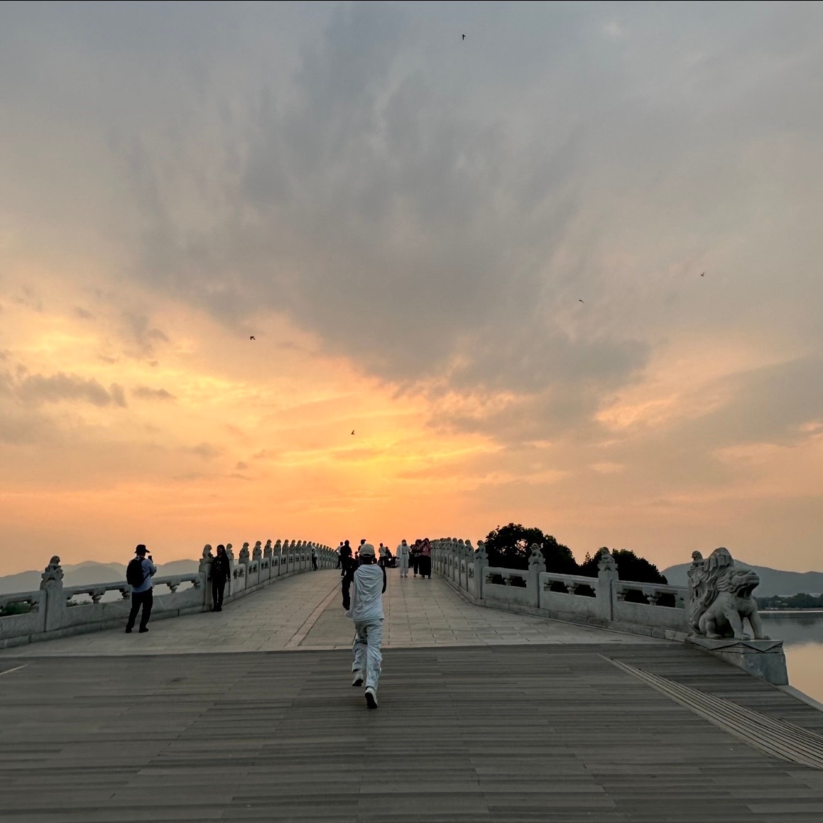 大家都想趁着凉快晨练。