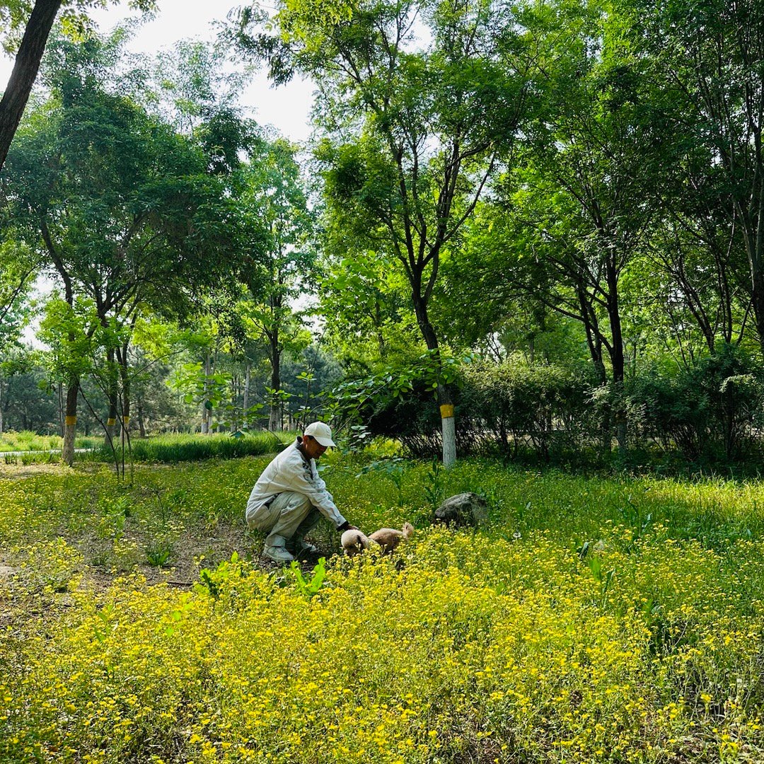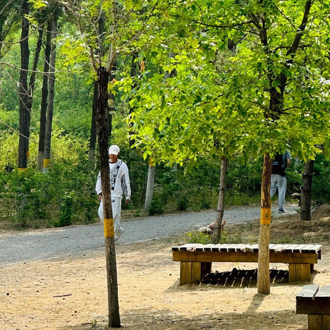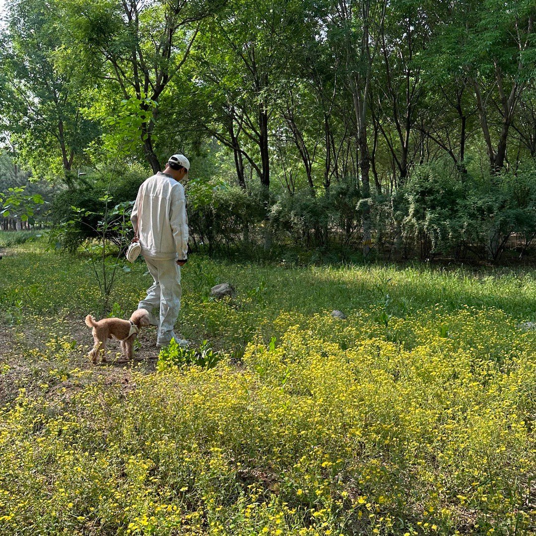 我跟爸爸出门散步,