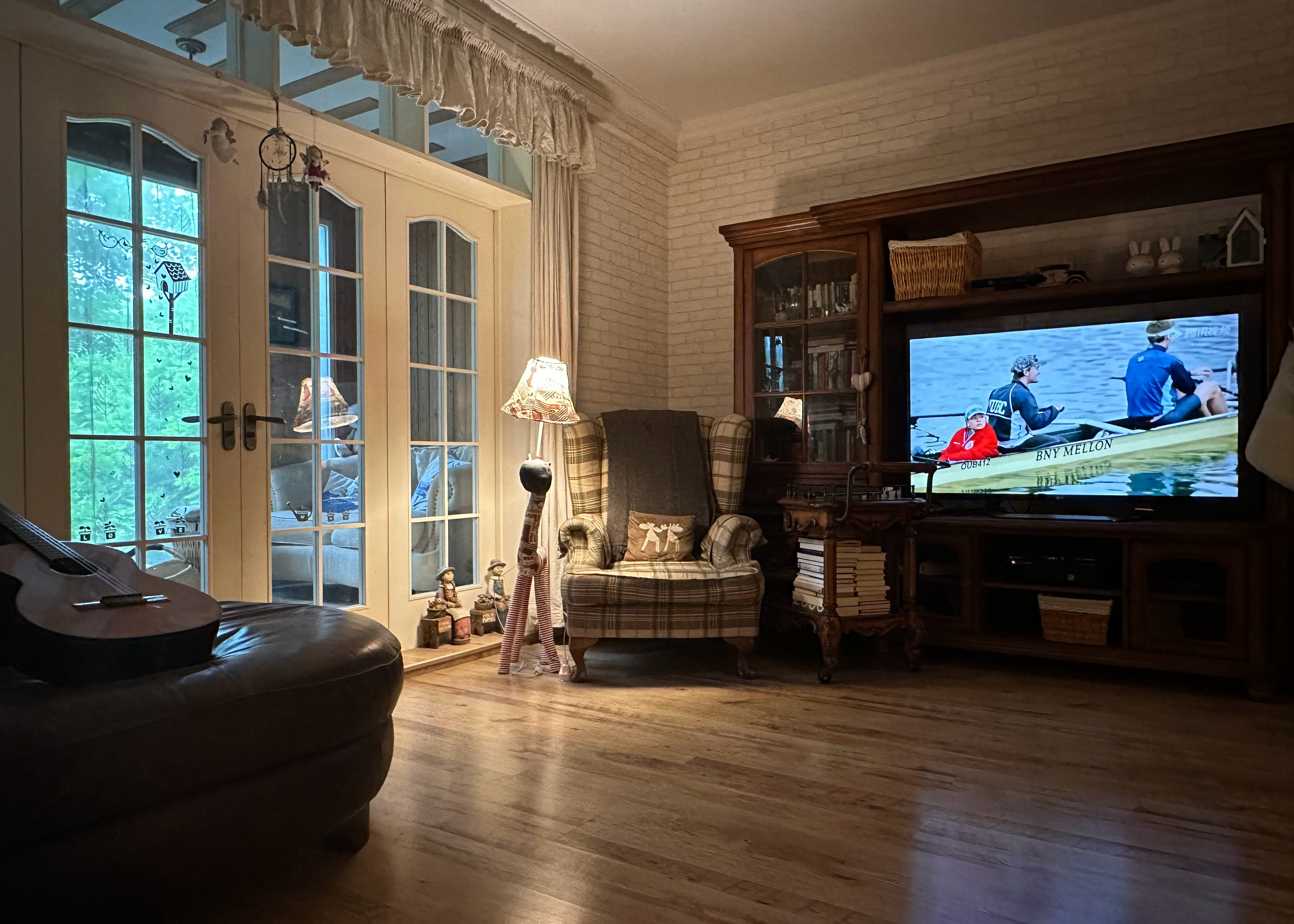我躺在阳台沙发上看书,
