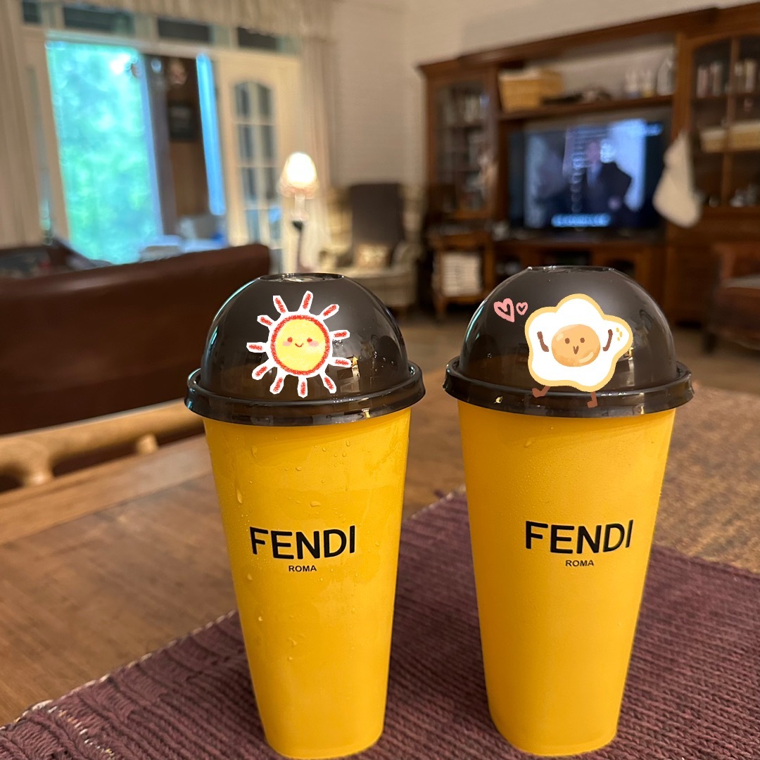 “抢到”两杯跟Fendi联名的喜茶。