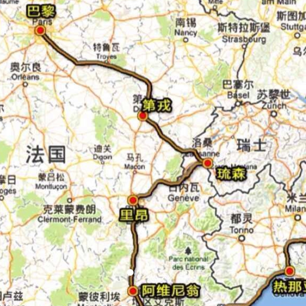 途经戛纳、摩纳哥、马塞、普罗旺斯、阿维尼翁、里昂、第戎、奥尔良、巴黎,