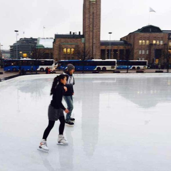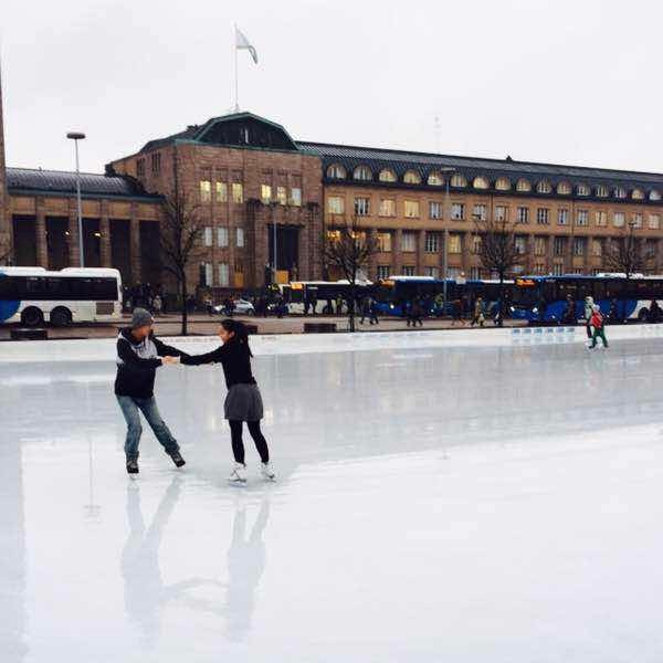 在芬兰赫尔辛基街头滑冰,