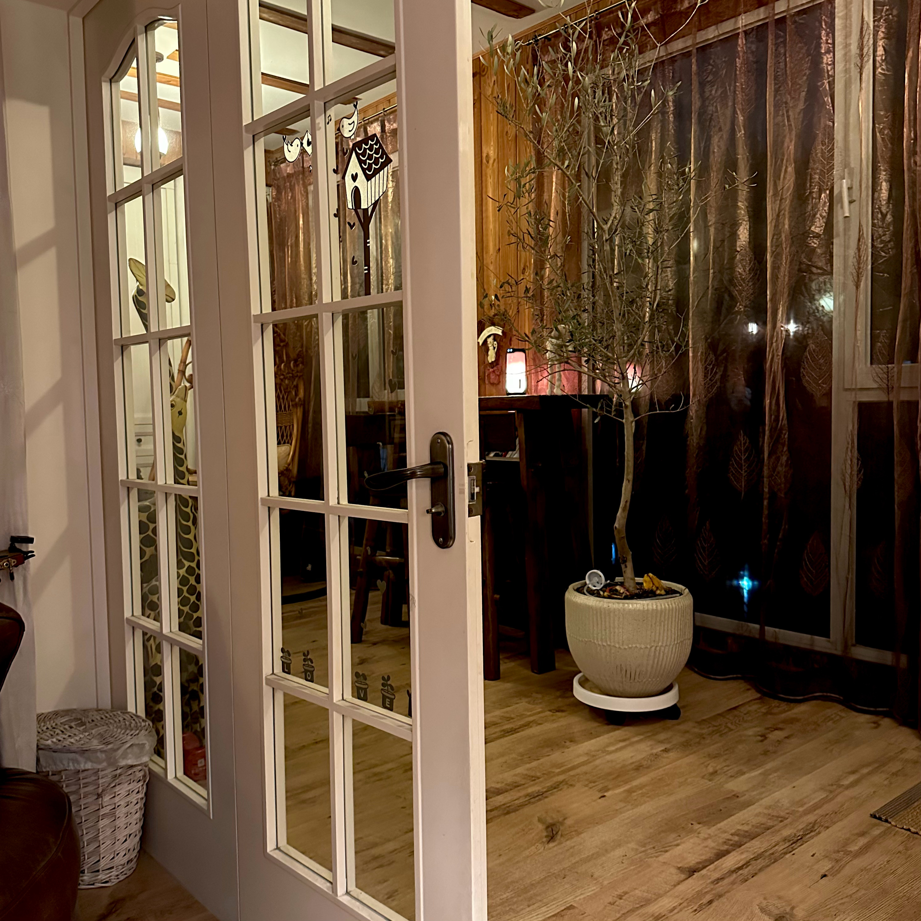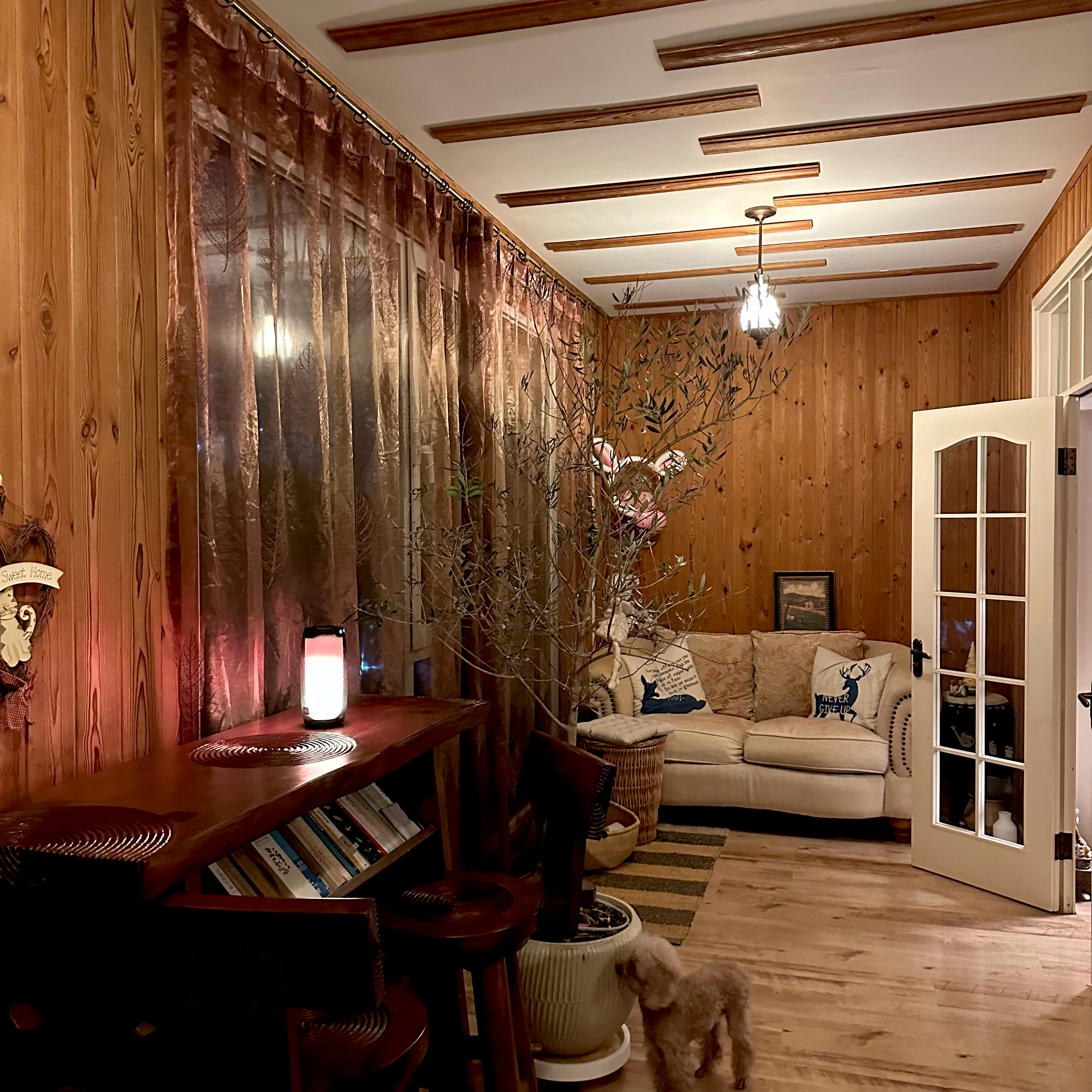 我买了一棵超大圣诞树摆在阳台窗前,
