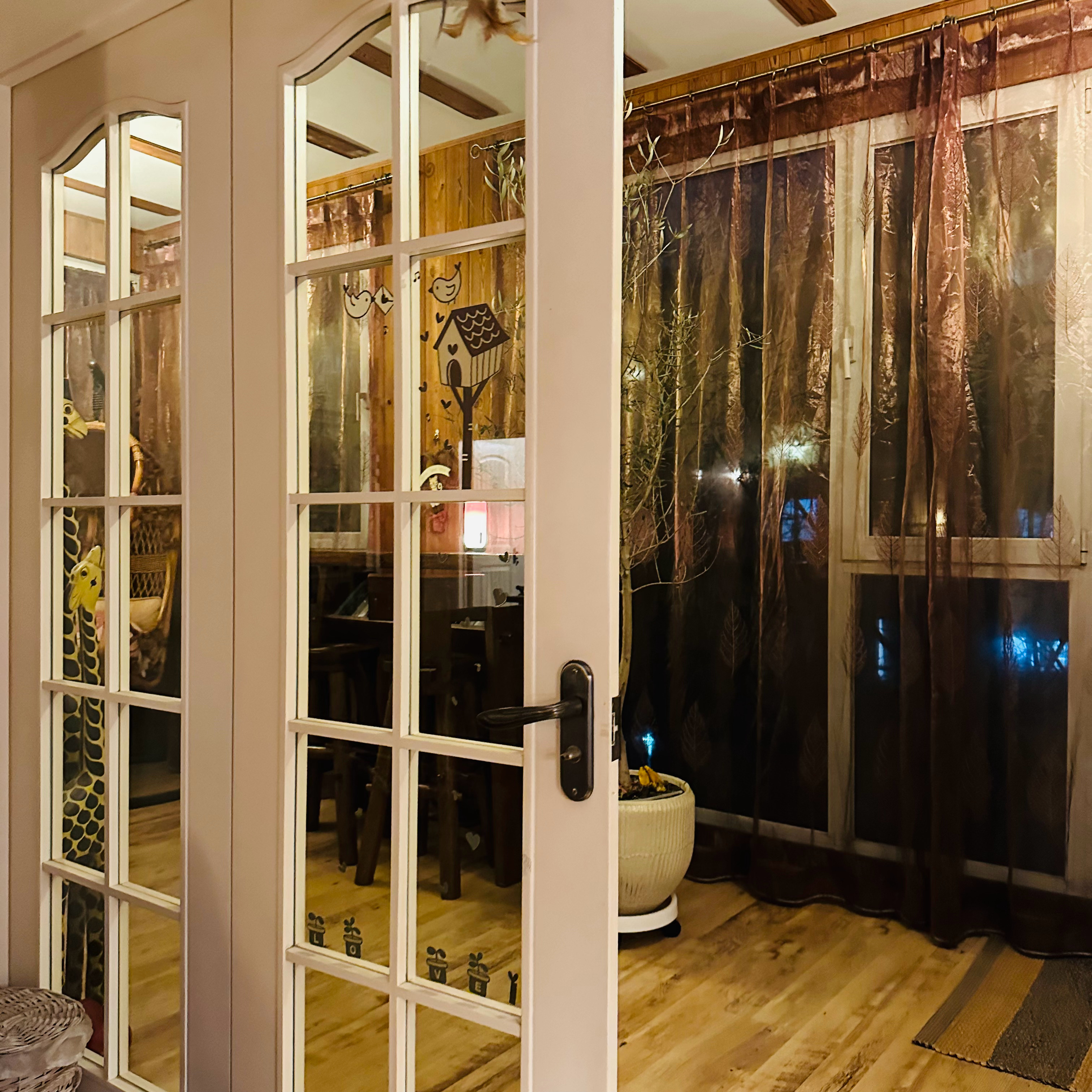 看到对面窗户贴了喜字,