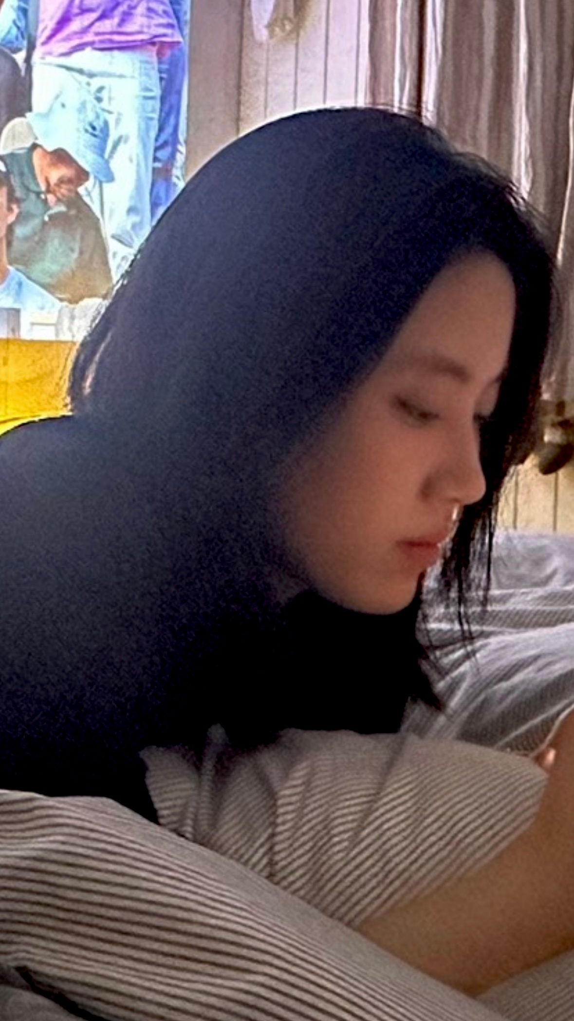 早上醒来她洗完澡出来,
