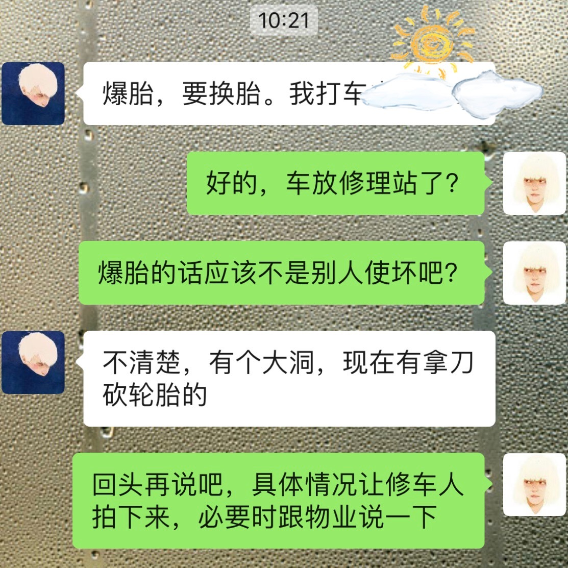 车爆胎了;