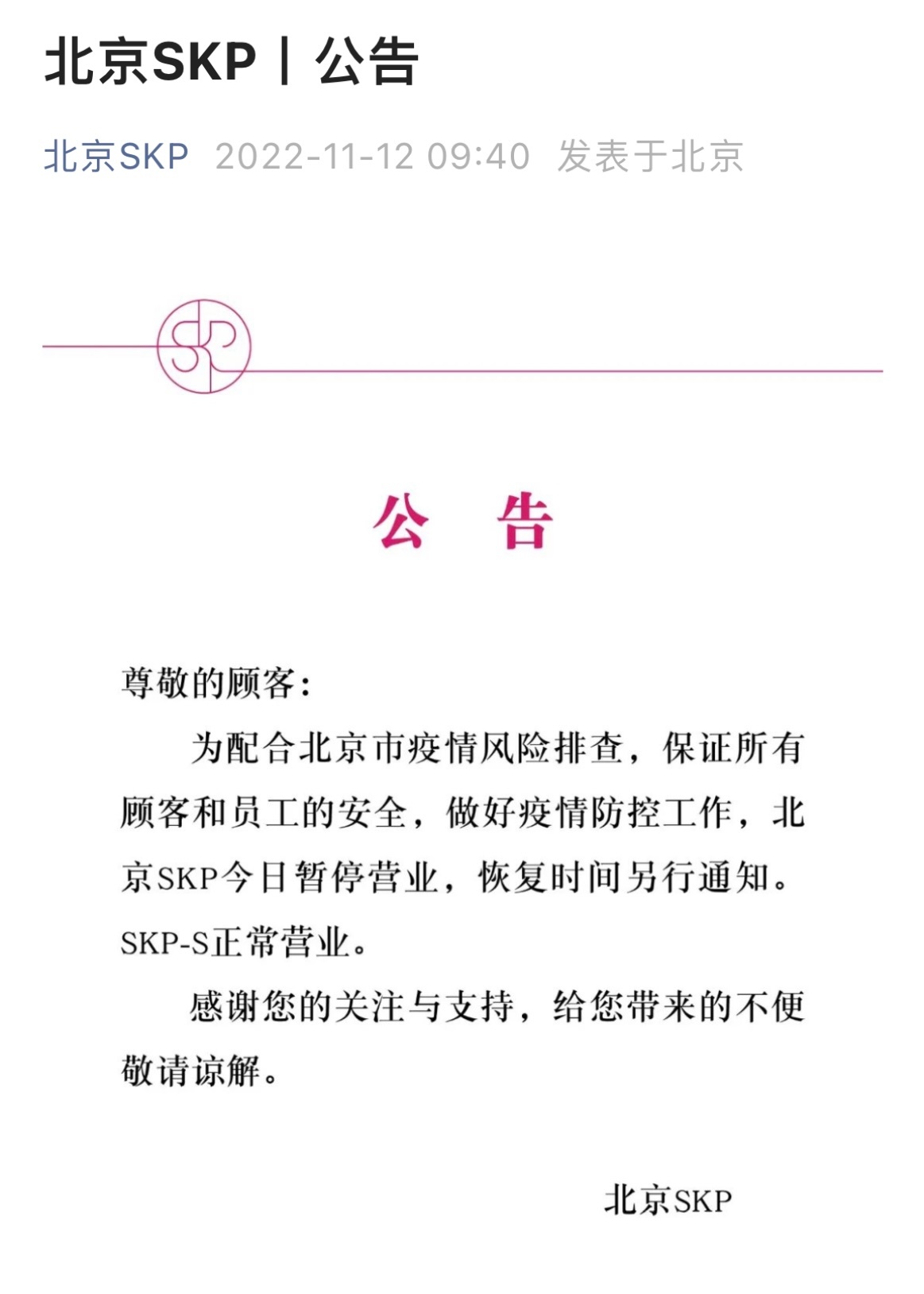 新光天地暂停营业。