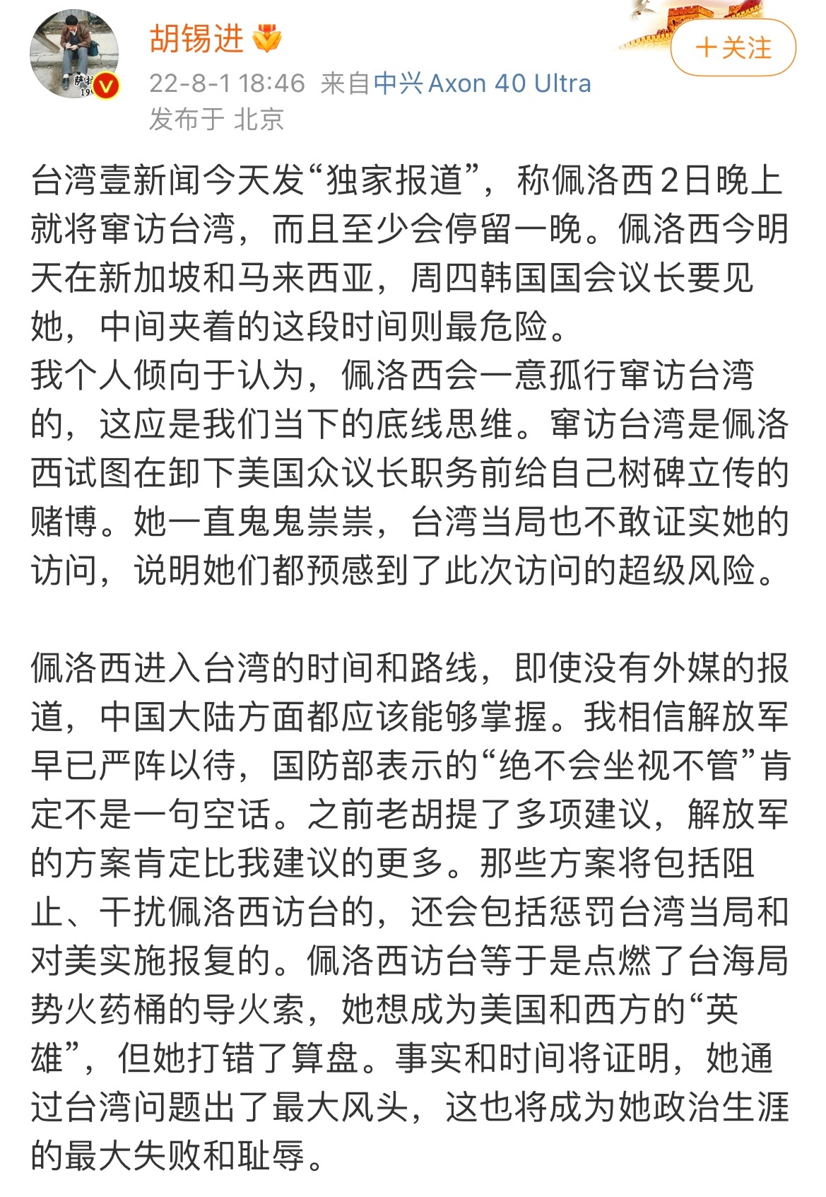 老胡和佩洛西的私人恩怨了,