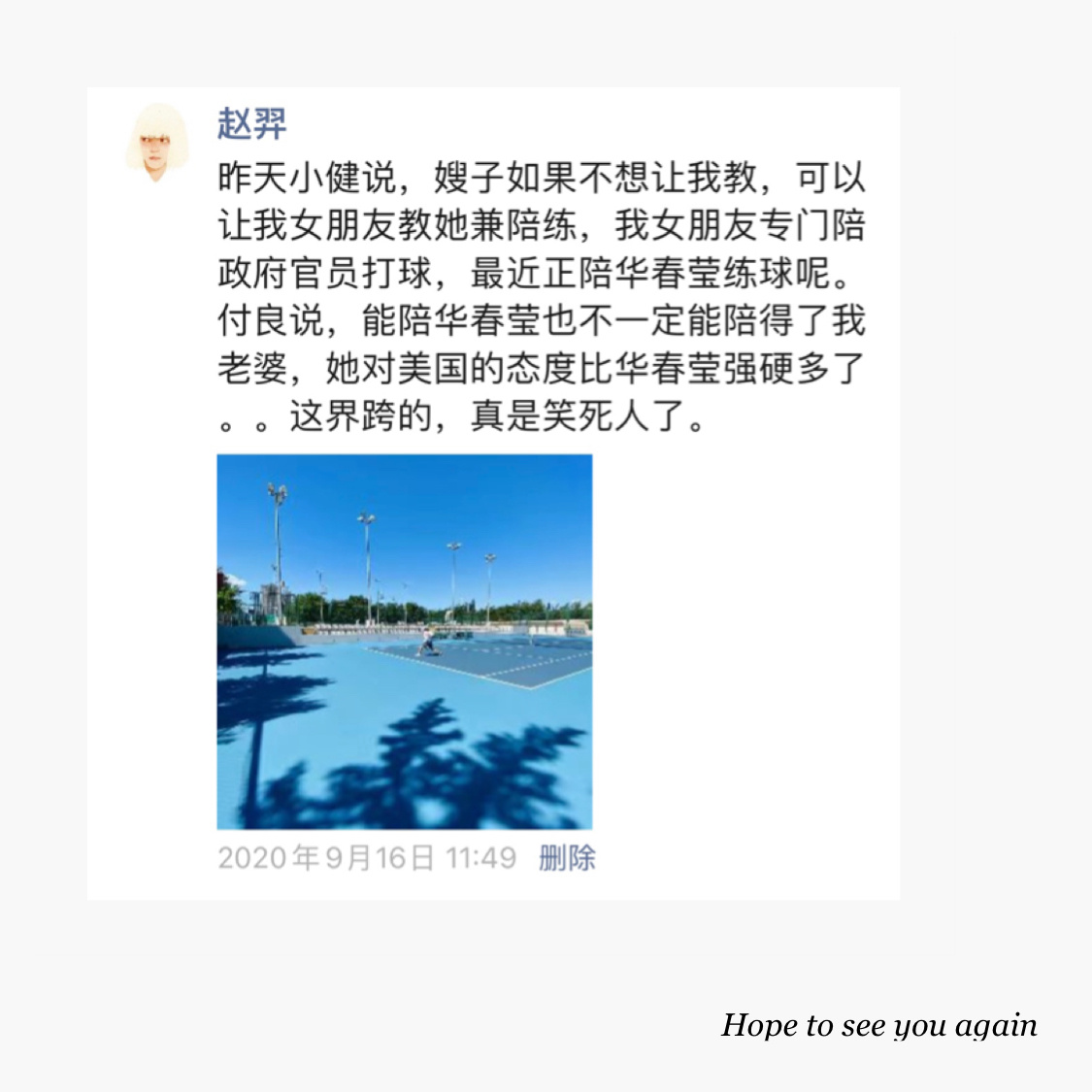 他在院子里给我发信息,