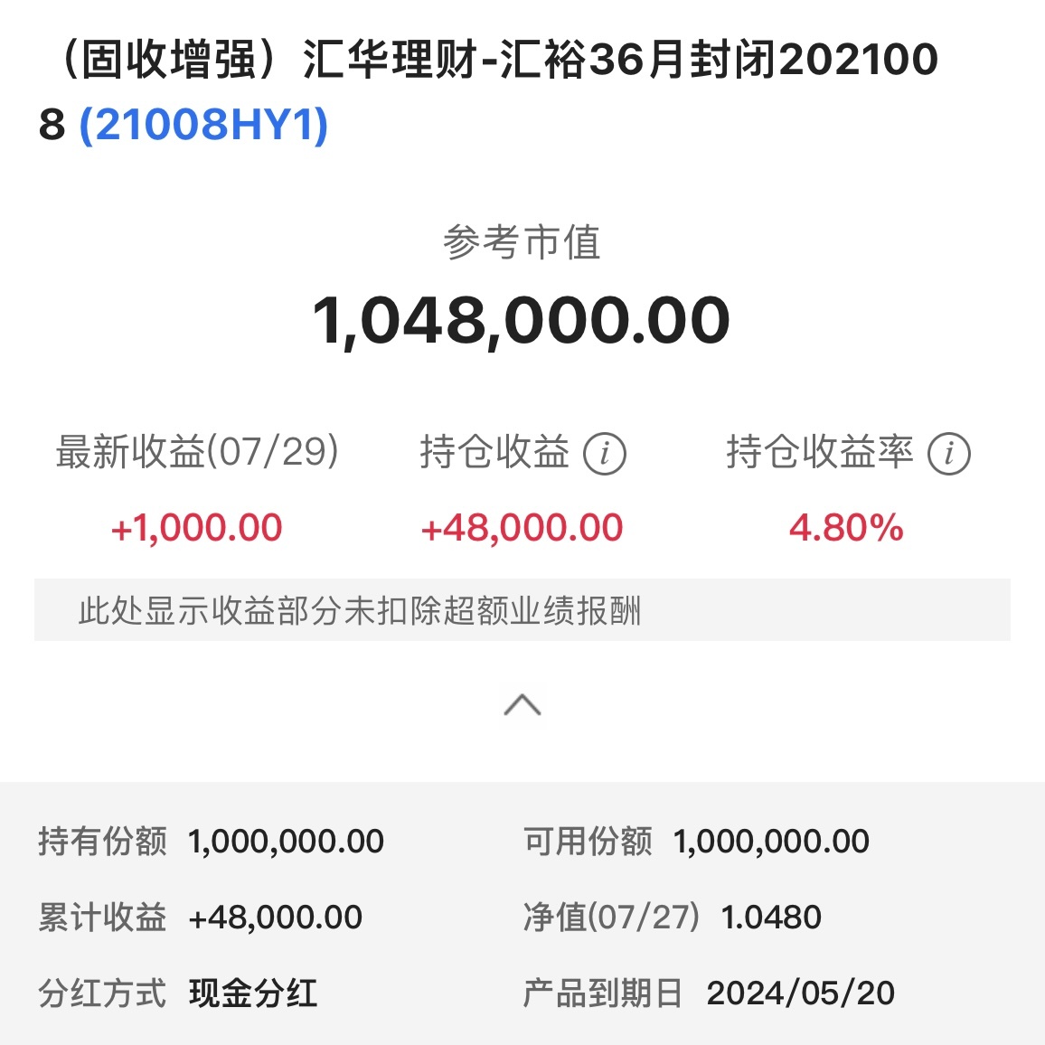 封闭2、3年的产品收益,