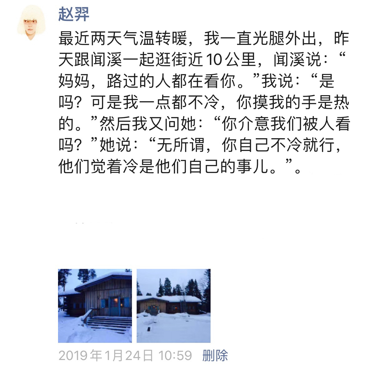 问我:“穿这么多不热吗?”
