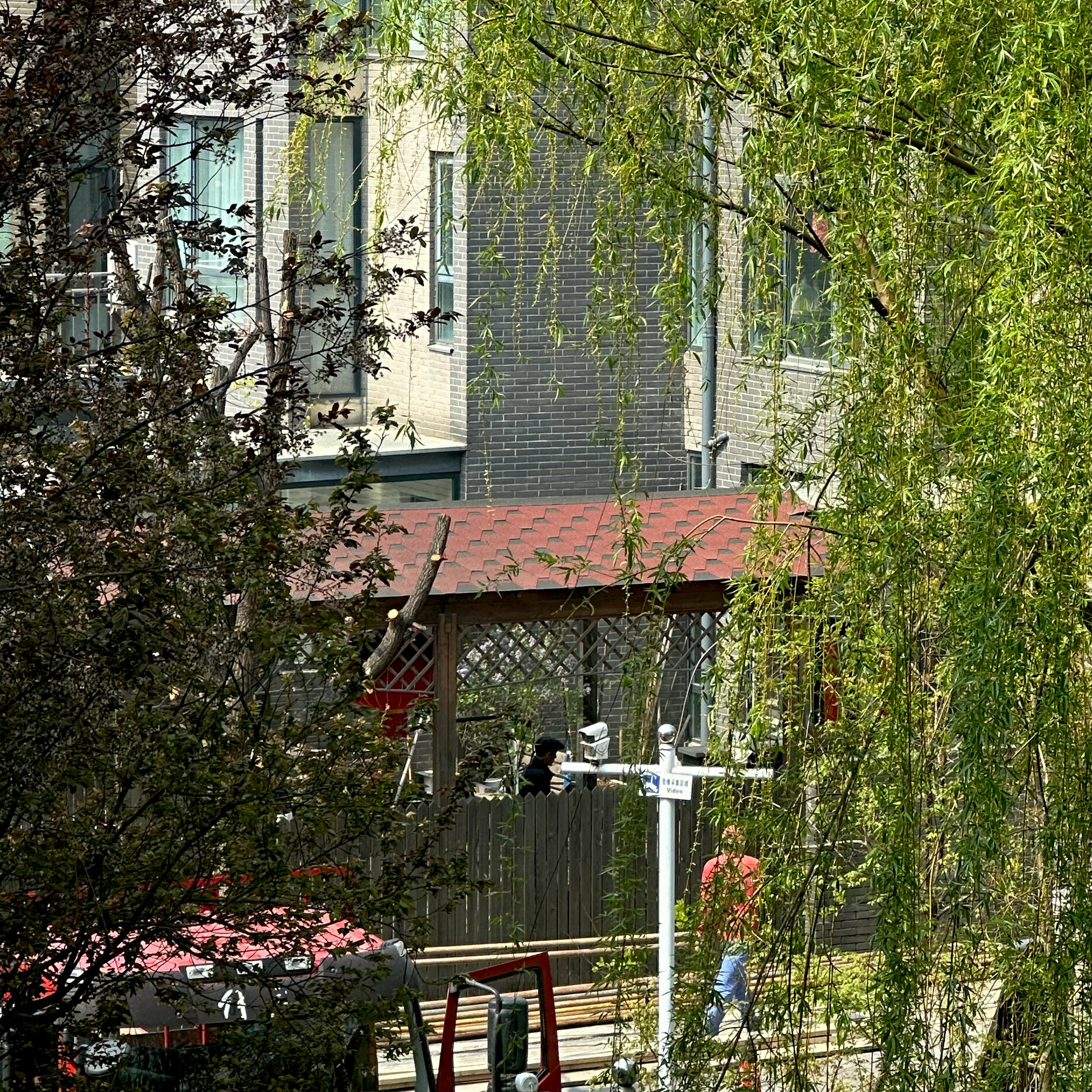透过窗户看到隔壁邻居准备搞小院装修了,