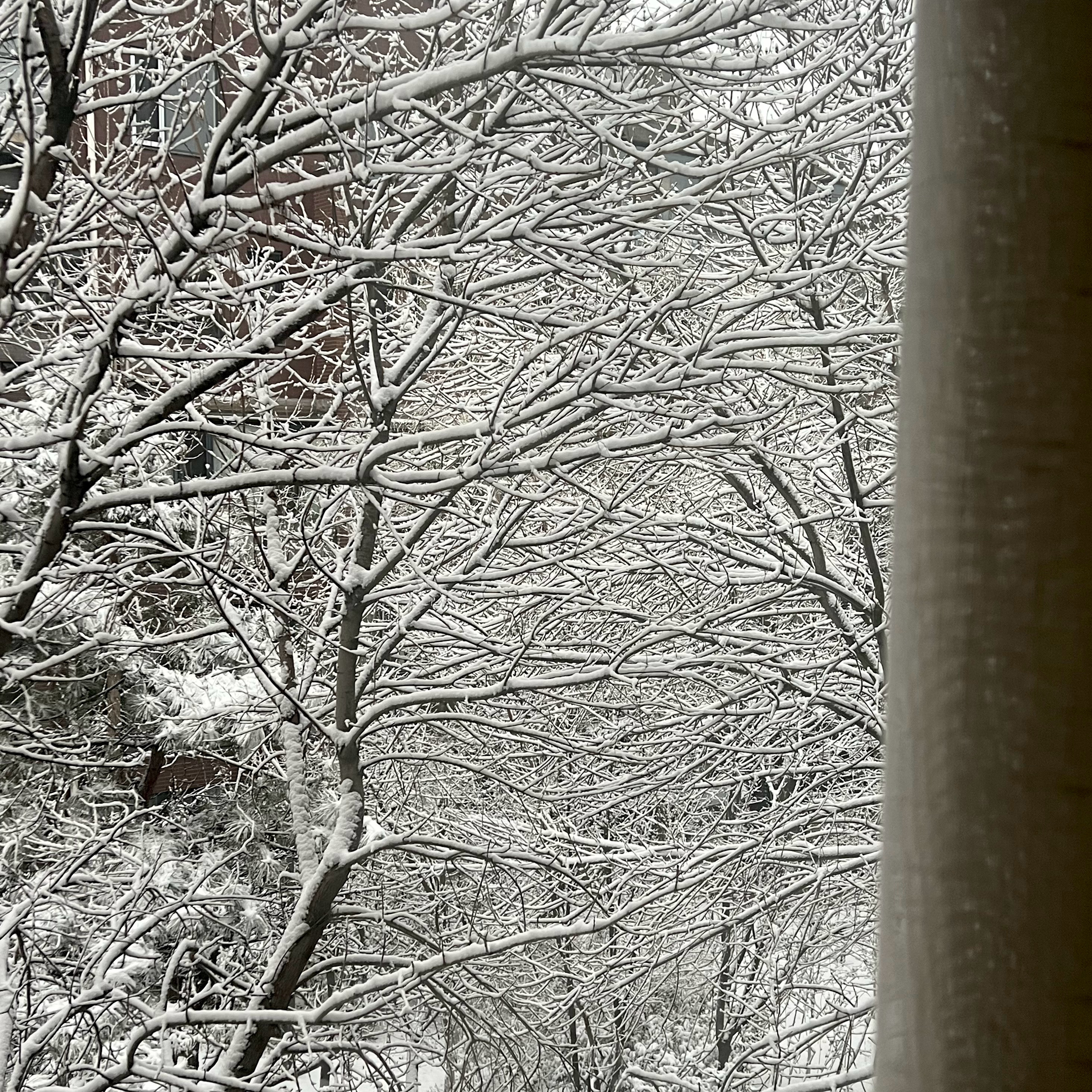 厨房窗外的树枝上,